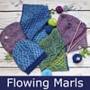 The Flowing Marl Series is an introduction to Fission Knitting. This technique uses marled knitting and slipped stitches to create a reversible fabric with a different cable motif on each side.