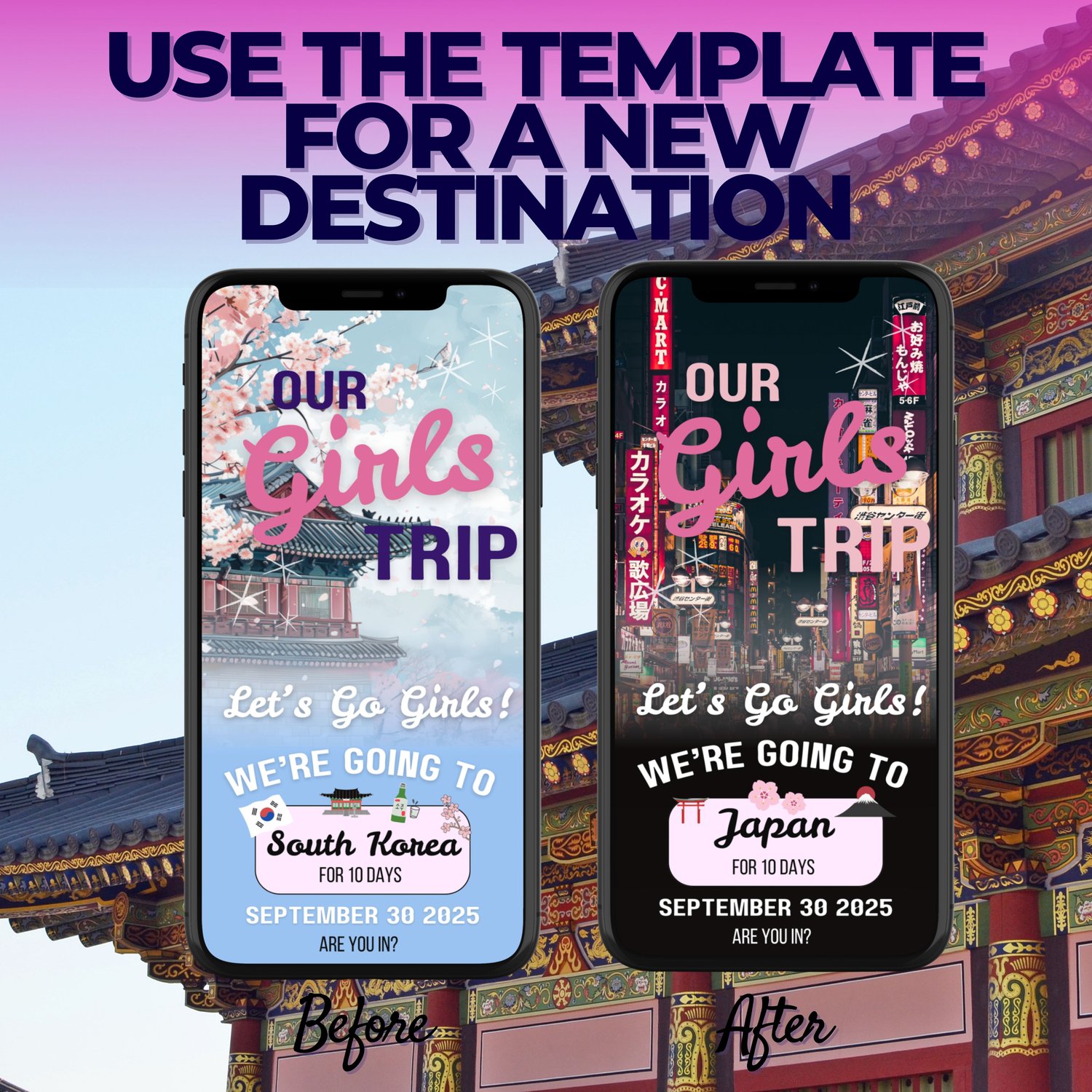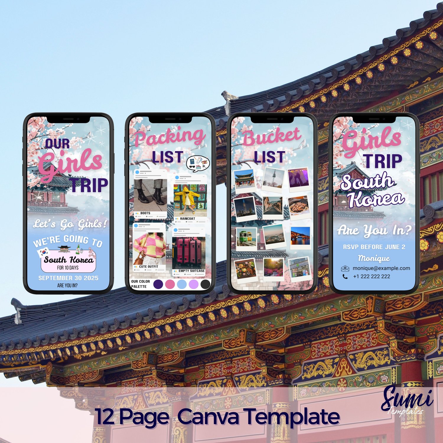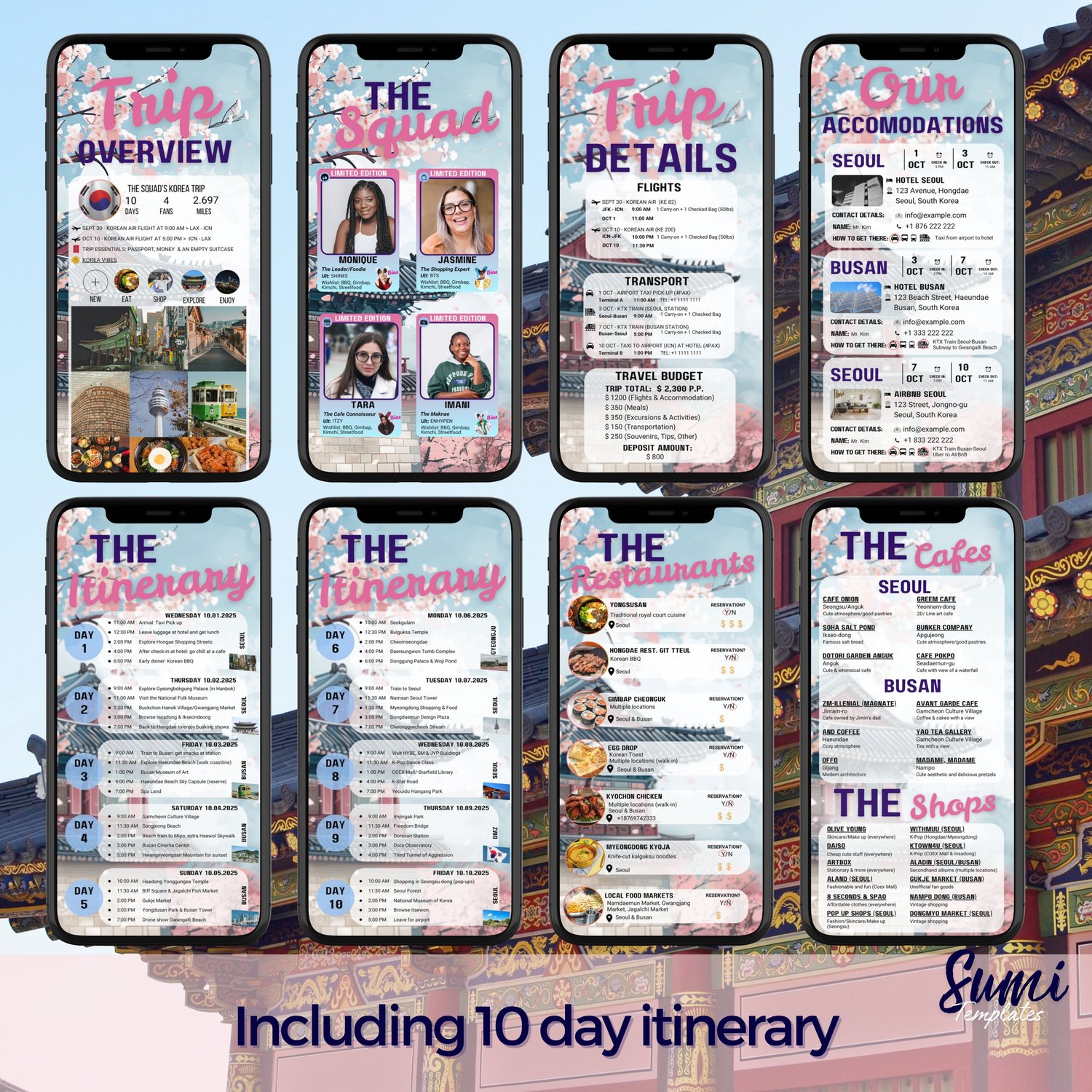 South Korea Digital Itinerary Invitation Template – 10-Day Girls Trip Vacation Planner ✨