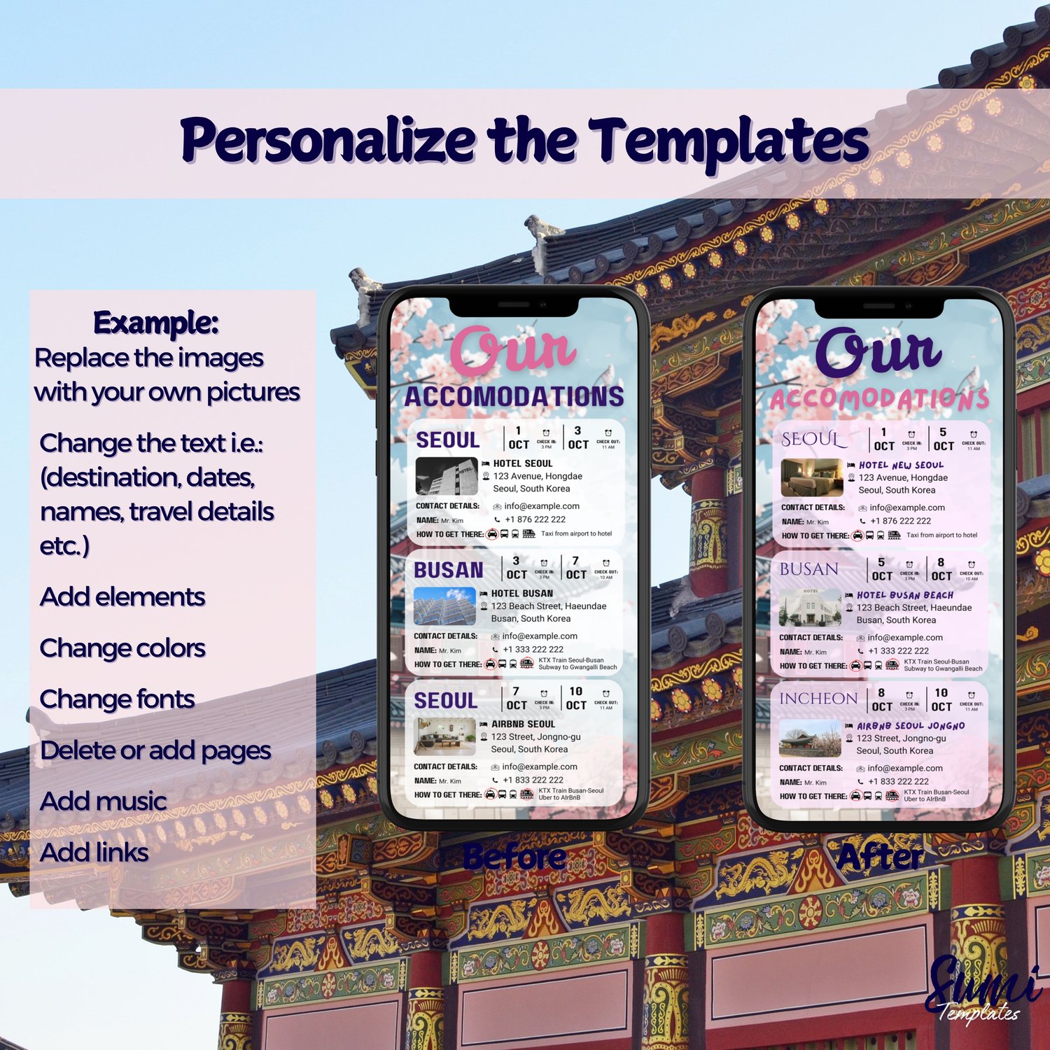 Fully Customizable: Adjust text, colors, and layouts to perfectly fit your trip.