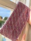 Just as Mene, the Greek personification of the moon, drifts across the night sky, small moon motifs work their way across the Mene Cowl, knitted in elegant wispy mohair. The background is also worked with a strand of mohair, this time held with a strand of woollen laceweight yarn to create a shimmering marled background for Mene’s moon motifs to race across.