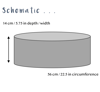One size: 56 cm / 22.5 in circumference x 14 cm / 5.75 in deep (see schematic in photos for further information)