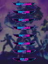 8 Panels (Instagram, YouTube, Twitter, Discord, Schedule, Rules, Donate, About Me)