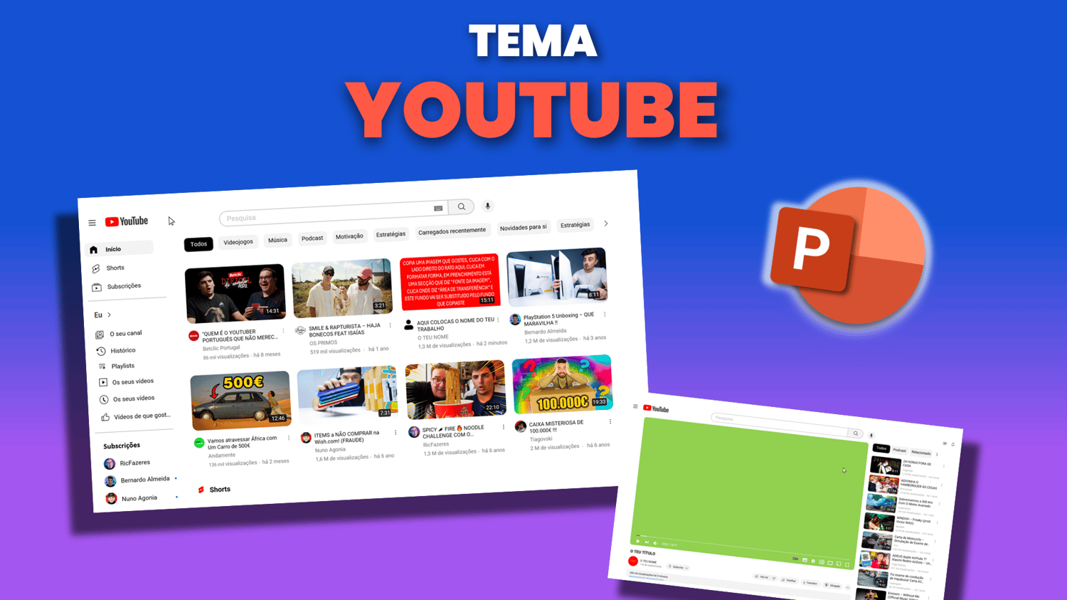 Não percas mais tempo com o design do teu PowerPoint! Com este layout totalmente personalizável, inspirado no Youtube, podes focar-te a 100% na pesquisa para o teu trabalho.