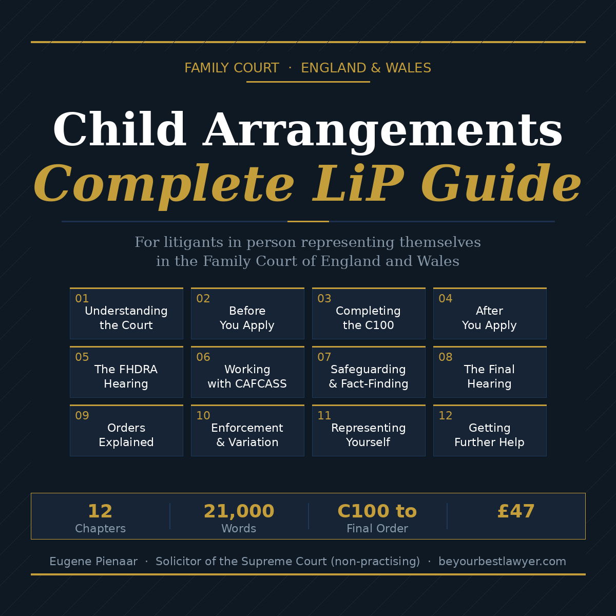 This guide is for educational purposes only. It does not constitute legal advice and does not create a solicitor-client relationship. Eugene Pienaar is a non-practising solicitor. If your case involves serious allegations of domestic abuse, concurrent criminal proceedings, or international child abduction, please seek specialist legal advice.