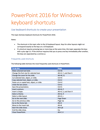 Boost your productivity with PowerPoint 2016 for Windows Keyboard Shortcuts Guide, a comprehensive reference designed to help users speed up their workflow and navigate PowerPoint efficiently. This guide covers essential shortcuts for editing, formatting, presenting, and navigating slides, allowing users to create professional presentations faster and with greater ease.