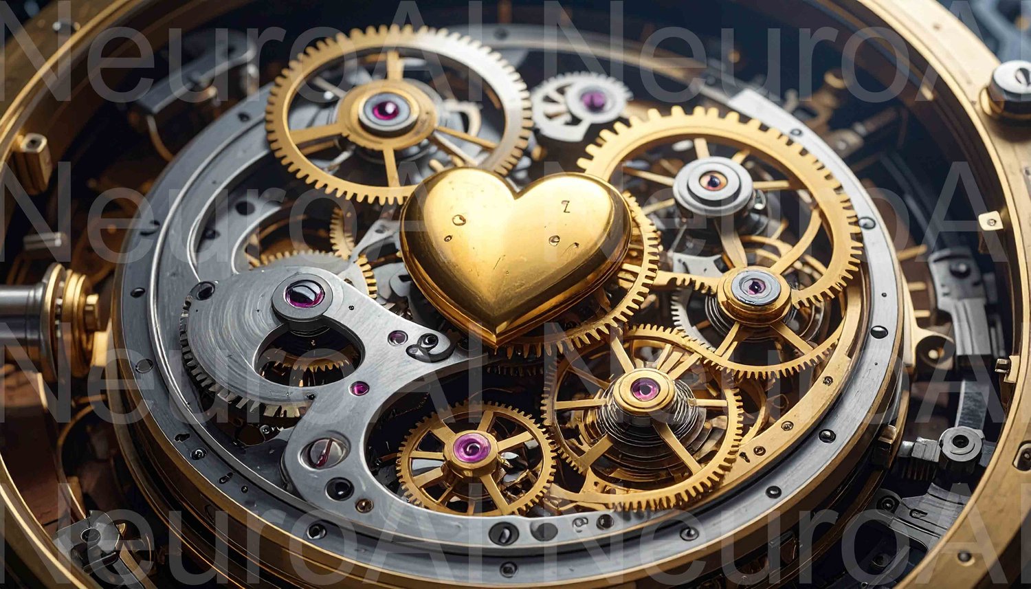Golden heart within intricate clockwork mechanism