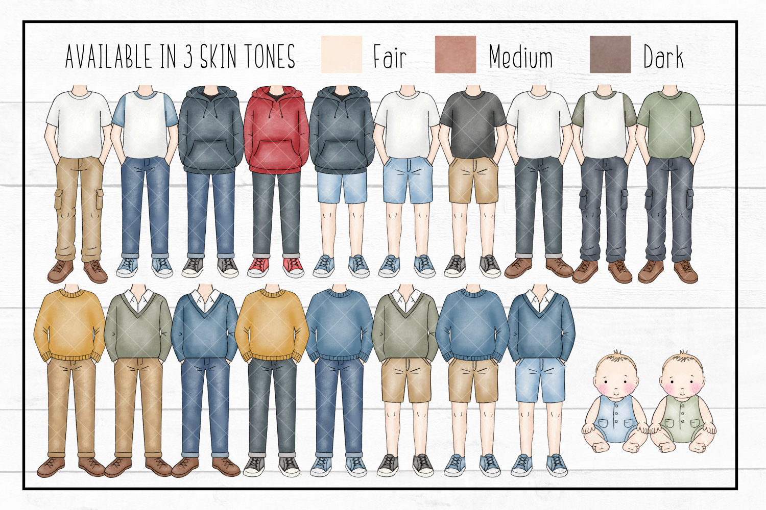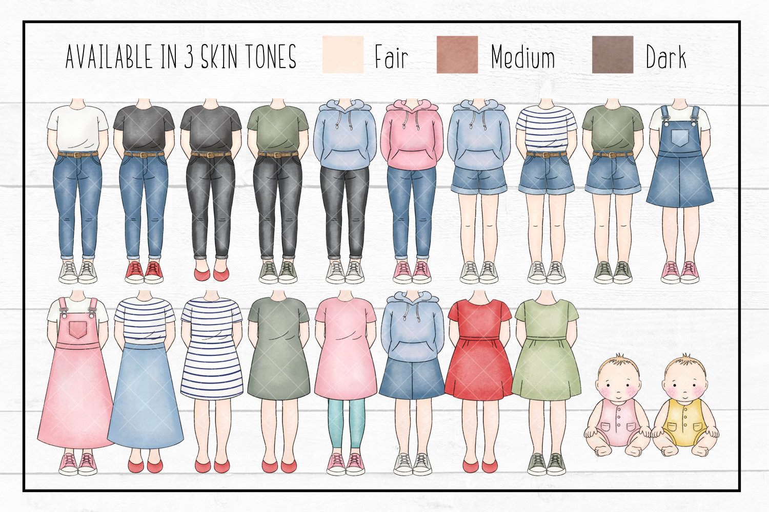 - 4 babies in 3 skin tones (fair, medium and dark)