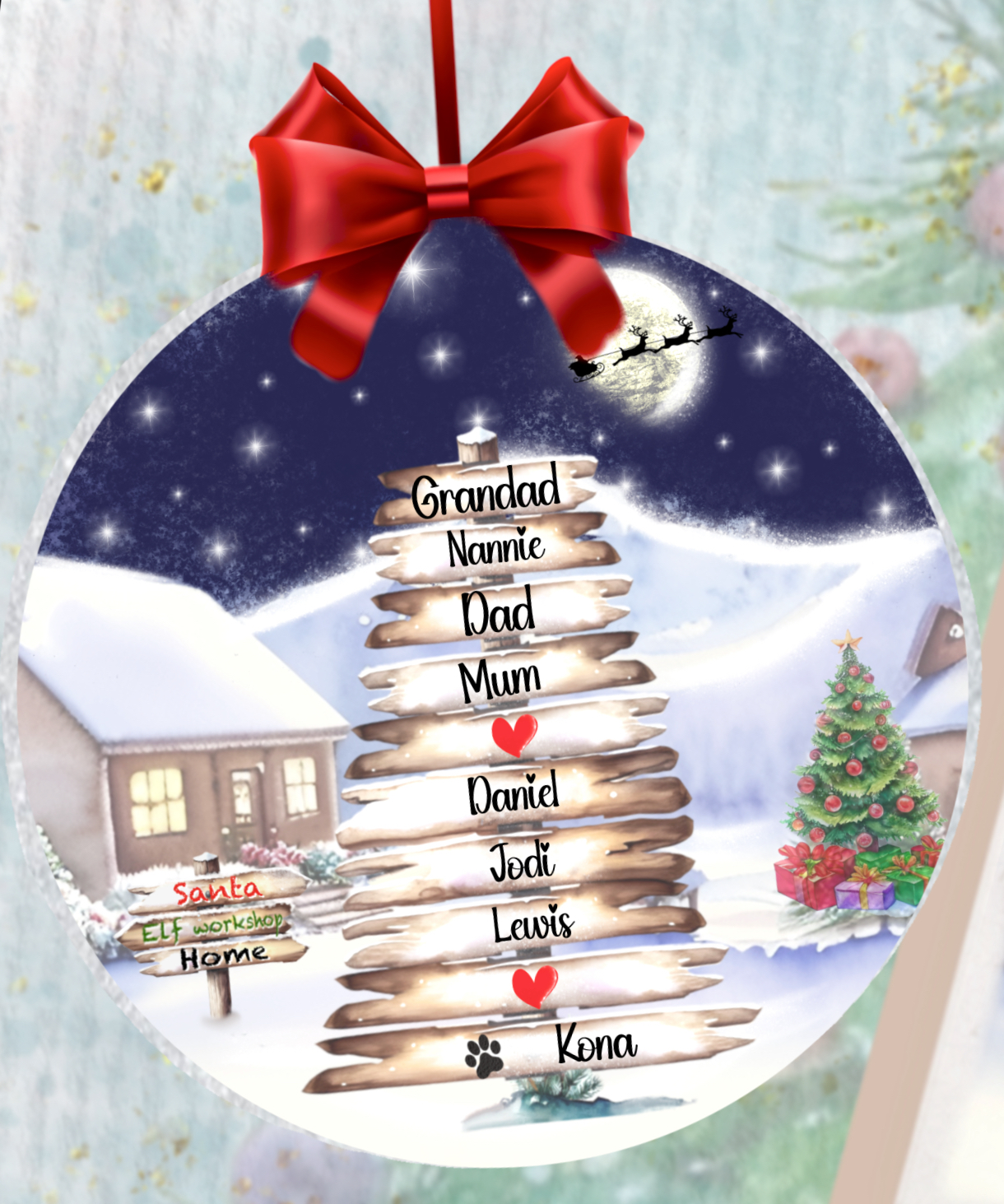 Christmas scene, wooden sign with 10 slats to personalise. Sublimation, print. 3 PNG files. Space for up to 10 names, if you don’t have 10 family members simply add shapes, pictures, emblem. You can see I’ve used a heart shape but you can add anything at all.