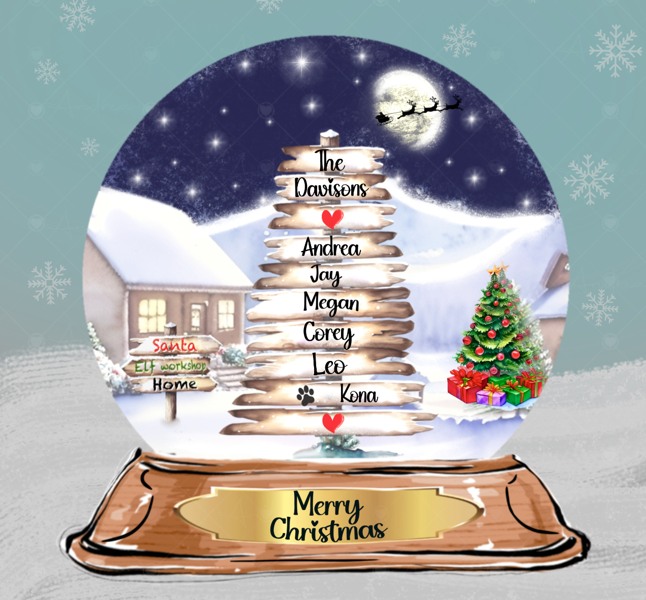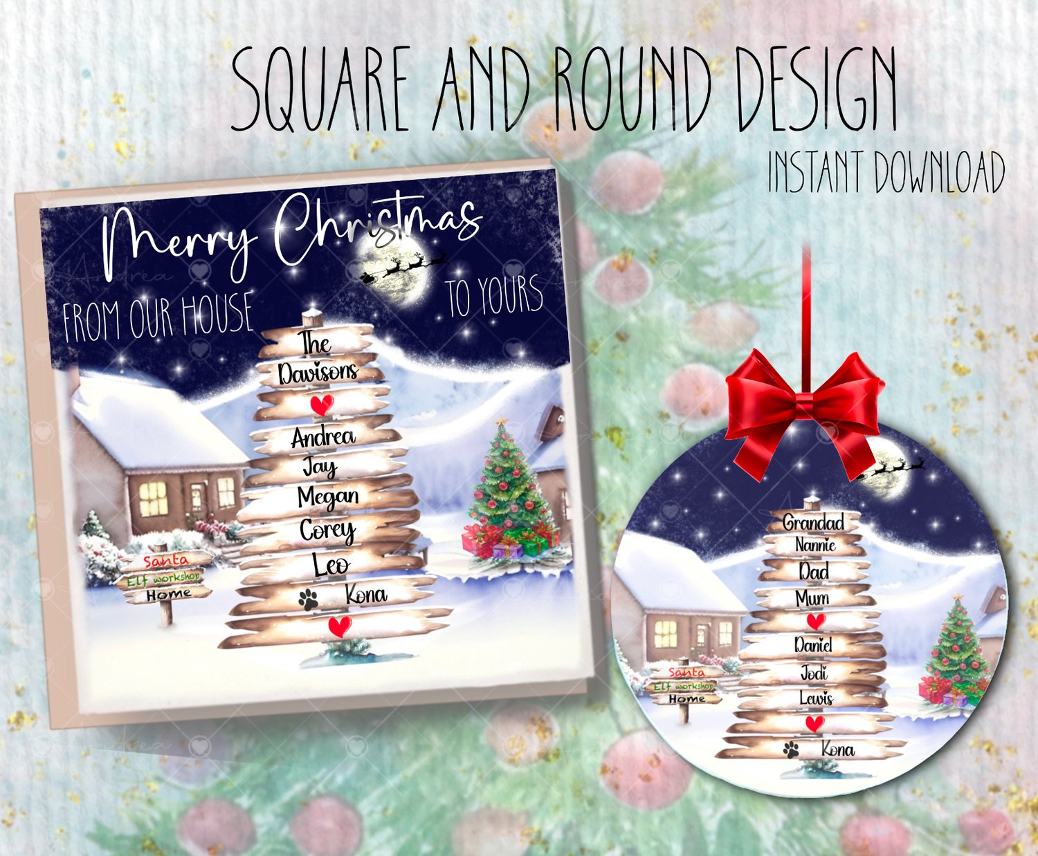 Christmas scene, wooden sign with 10 slats to personalise. Sublimation, print. 2 PNG files. Space for up to 10 names, if you don’t have 10 family members simply add shapes, pictures, emblem. You can see I’ve used a heart shape but you can add anything at