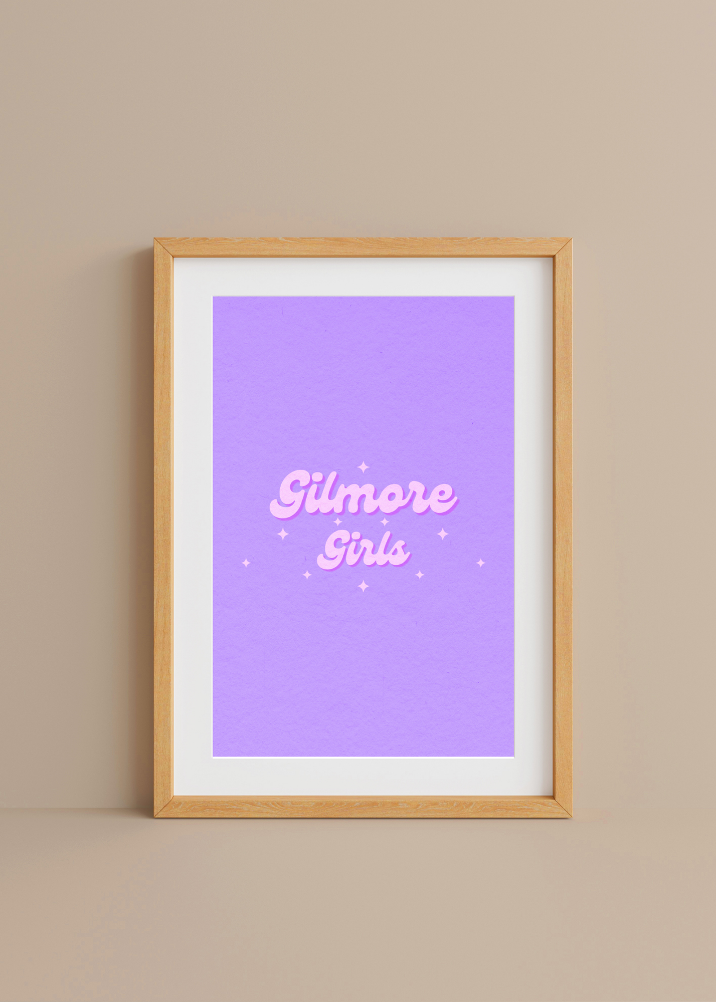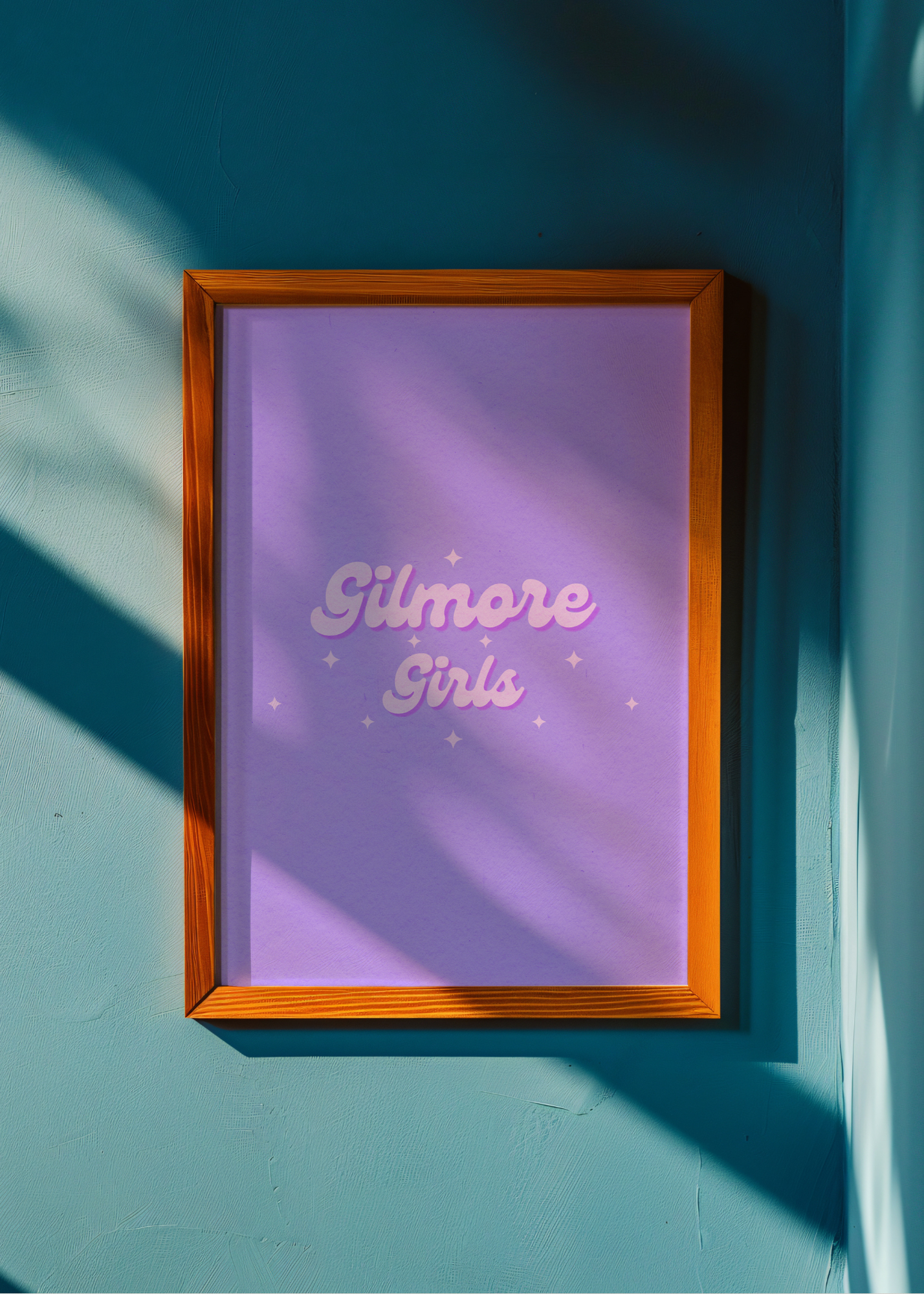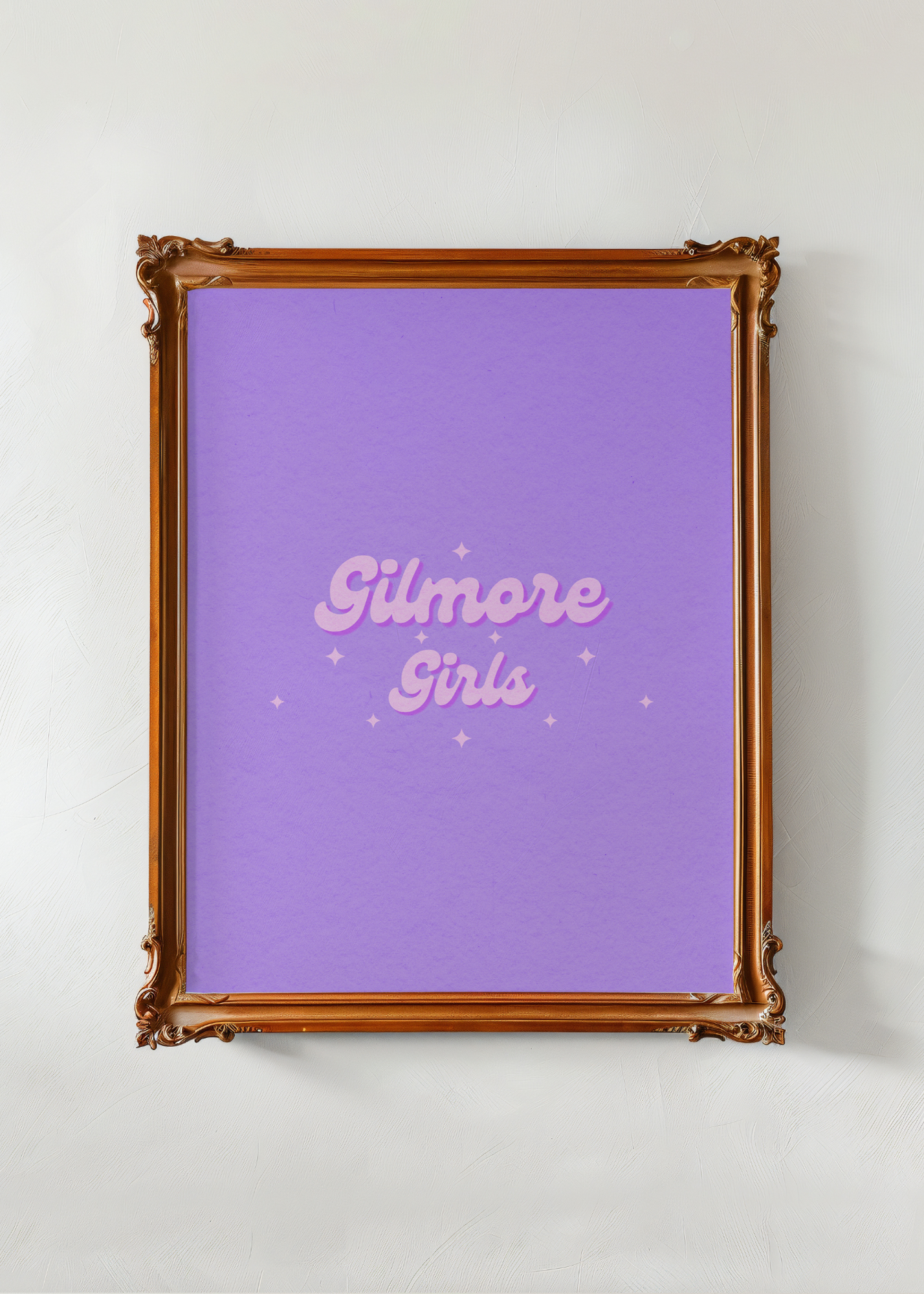 Gilmore Girls, Light Purple— A playful nod to a beloved world, this original piece brings the spirit of Gilmore Girls to life in a burst of color and charm. Set against a bright, cheerful backdrop, the iconic words shine in a fun, modern font—simple, bold, and full of heart. Whether it evokes cozy nights, fast-talking scenes, or small-town magic, this design offers a vibrant tribute to the stories we return to again and again. Available in a variety of joyful hues to suit every mood.