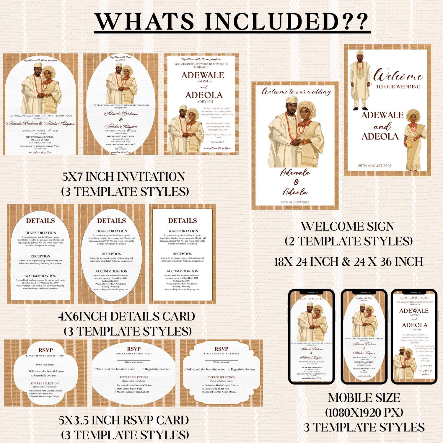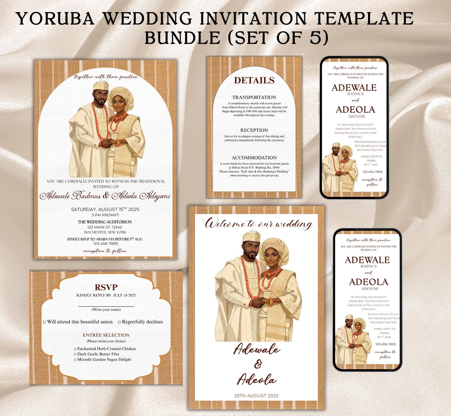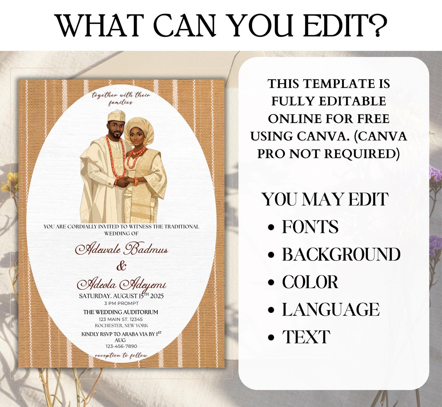 Yoruba Wedding Invitation Template: Nigerian Owambe, African Theme (Canva Editable, Digital Download)