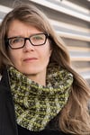 The Crossed Furrows Cowl was inspired by a photograph my father took of an emerging wheat field. It achieves a knitted plaid with a few easy tricks and is a fantastic way for a beginner to work with colour. Worked side-to-side and closed with three buttons, this cowl has a thick, deep fabric that won’t curl and is easier to make than it looks!