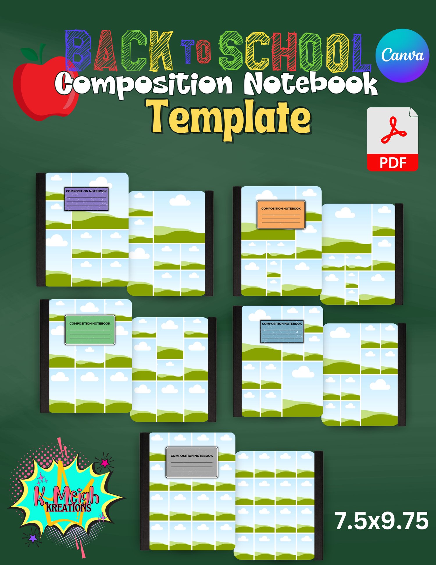 6 Collage Editable Themed Composition Notebook Template PDF File