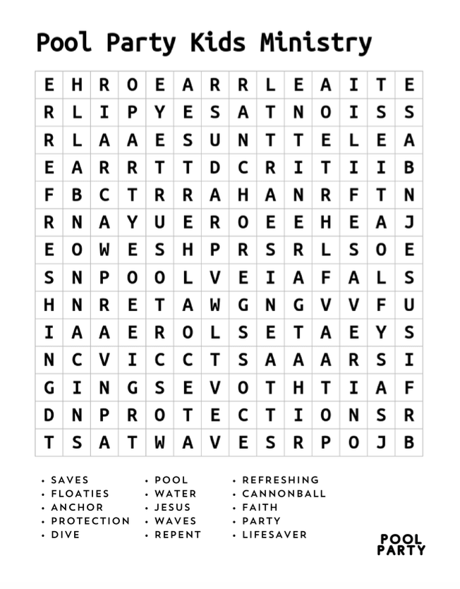 Acts 3:19, Jesus Saves, Jesus is my savior, word search, pool party