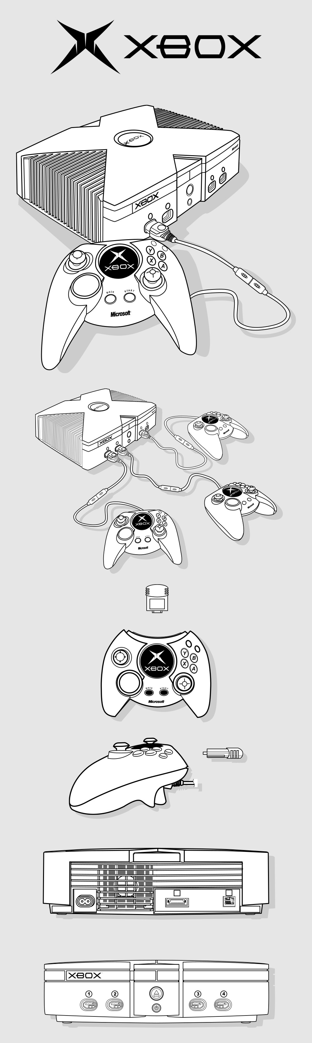 XBOX Game Console Blueprint PDF SVG Vector Drawing