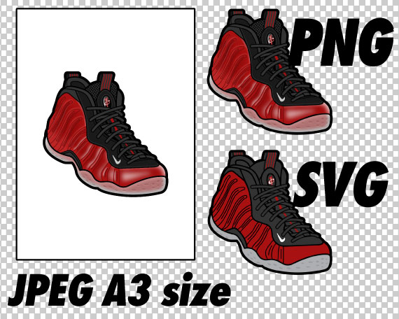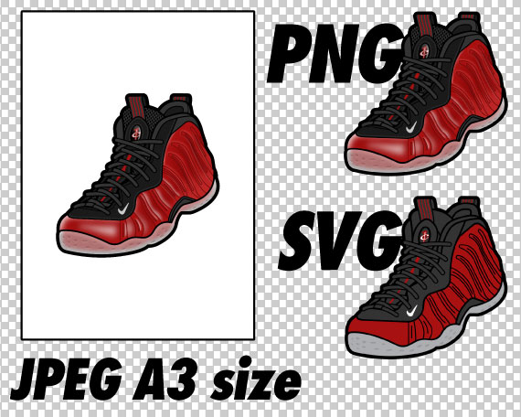 Foamposite One Varsity Red JPEG PNG Left & Right shoe bundle digital download