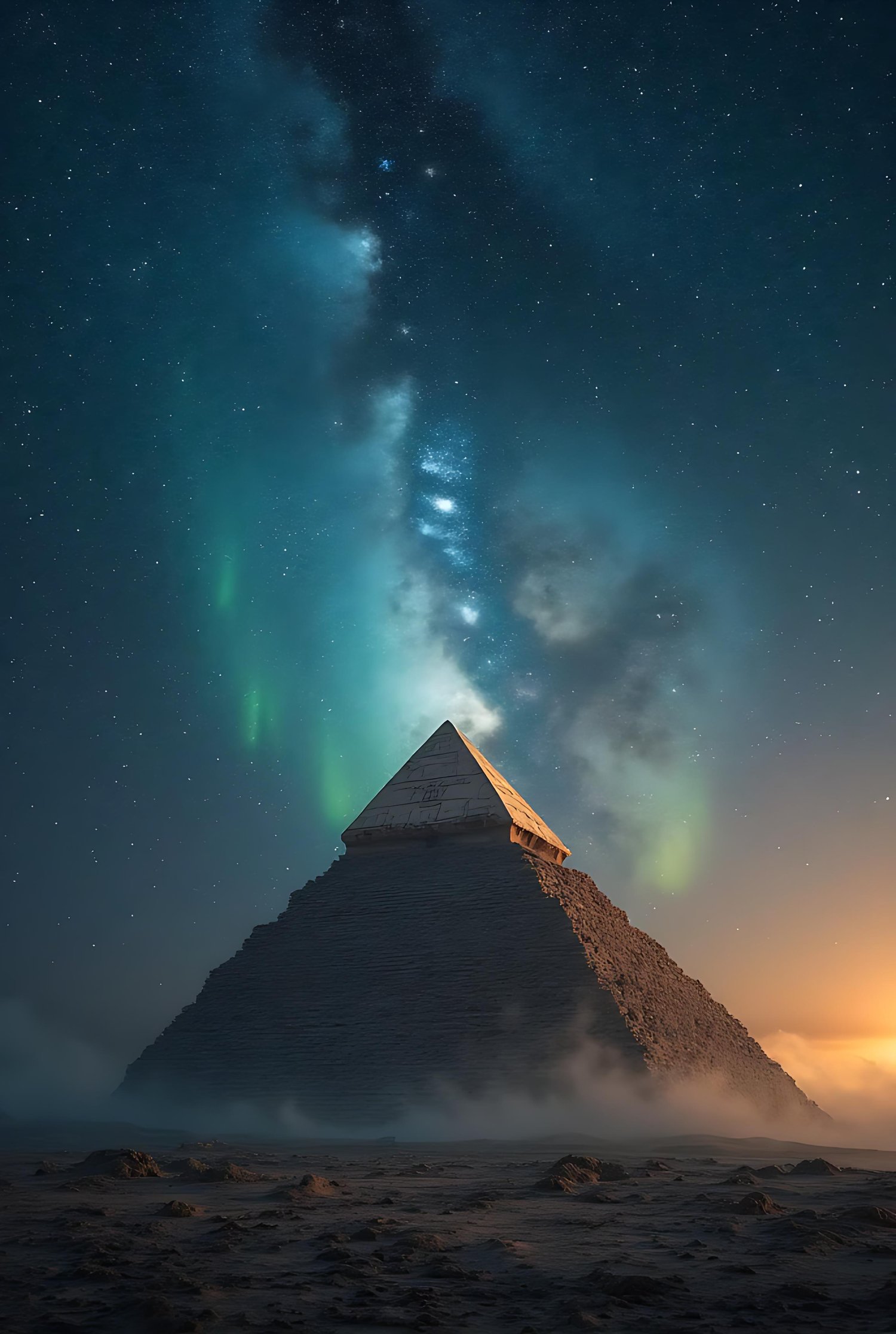 This beautiful AI wall art piece depicts the Pyramids with a starry sky. The photograph will be printed on Hahnemühle gallery fine print paper. The size is A2 (420mm x 594mm)