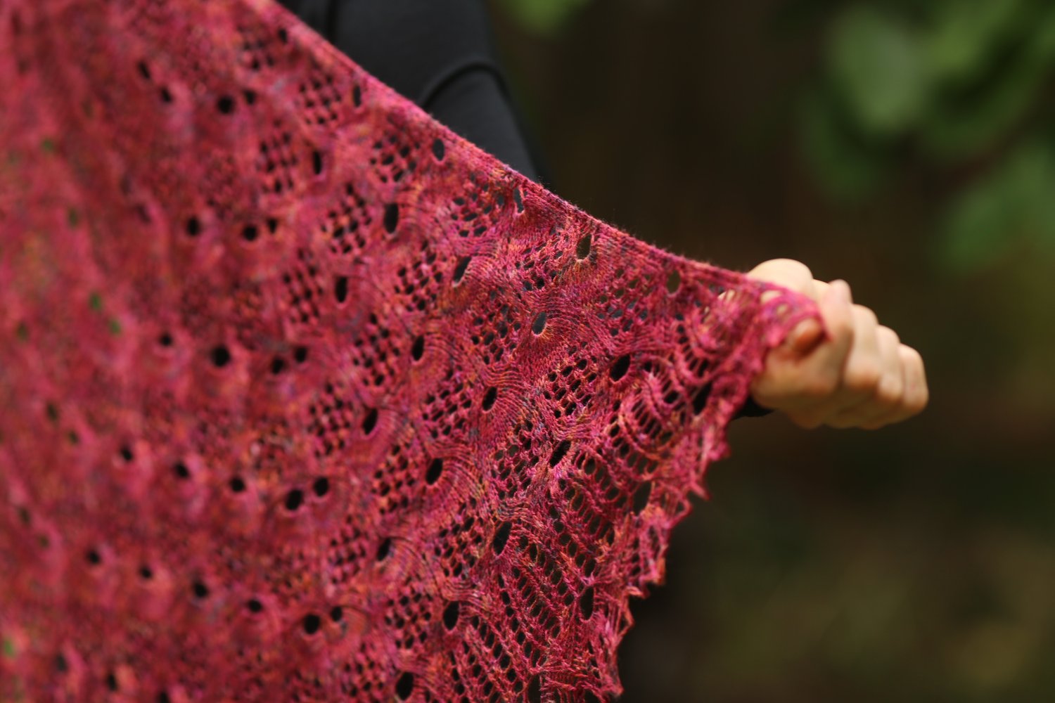 - The design suits any yardage of lace to sport weight yarn, of solid, semi solid, subtle speckle, or gradient colouring. (Choose needles to suit your yarn & gauge preference.)