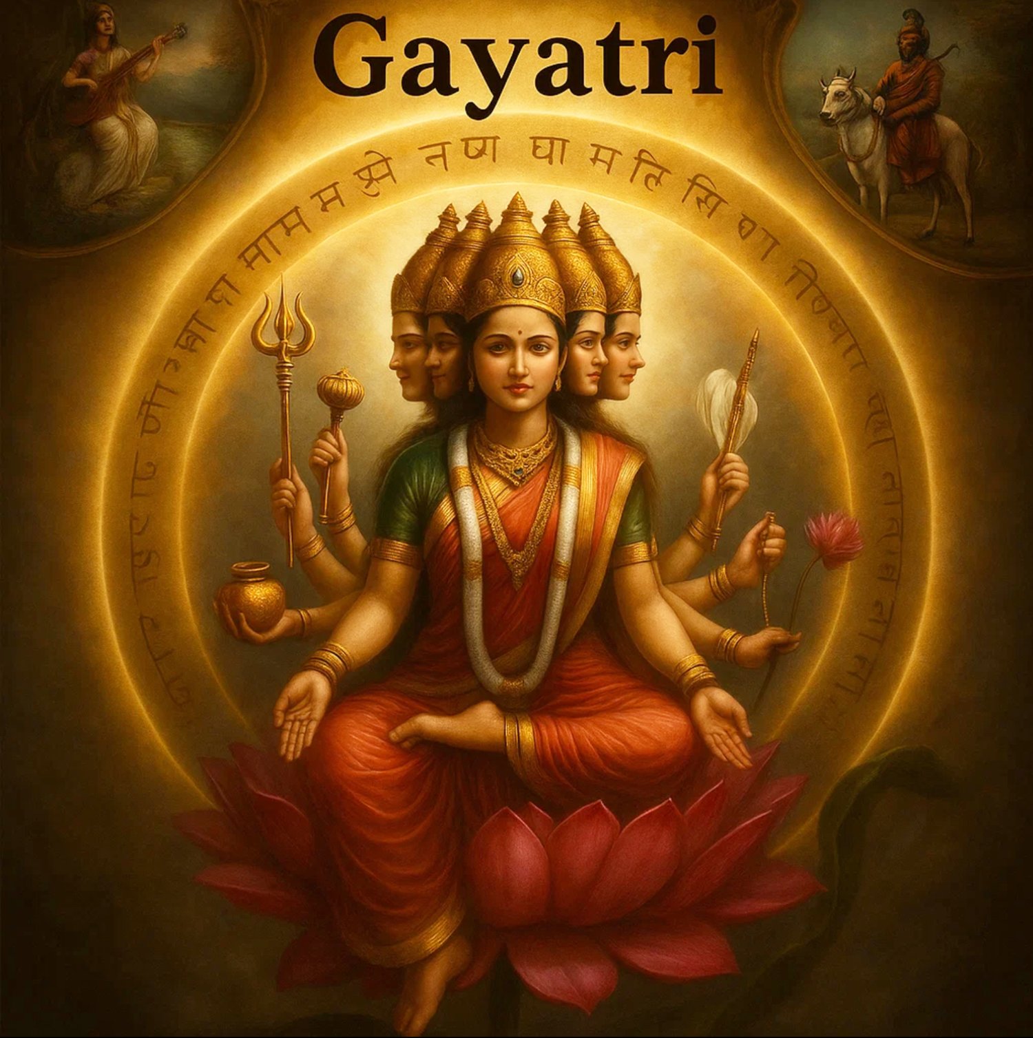 El mantra Gayatri (Ṛg Veda 3.62.10) es una invocación a la luz consciente que disipa la ignorancia y guía la mente hacia la claridad. Su sentido esencial: “Meditamos en la gloria del Divino Savitṛ; que su luz ilumine nuestro entendimiento.” Es considerado “madre de los mantras” y favorece discernimiento, paz interior y meditación estable.