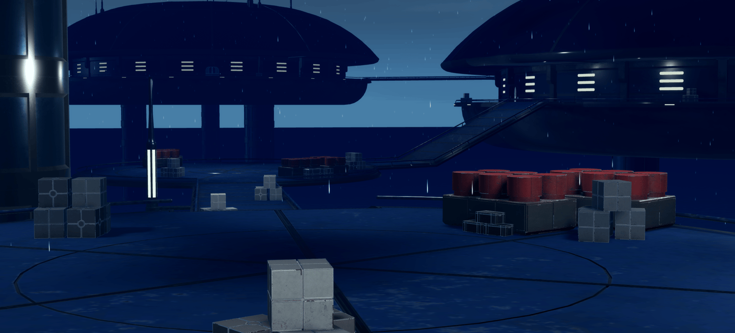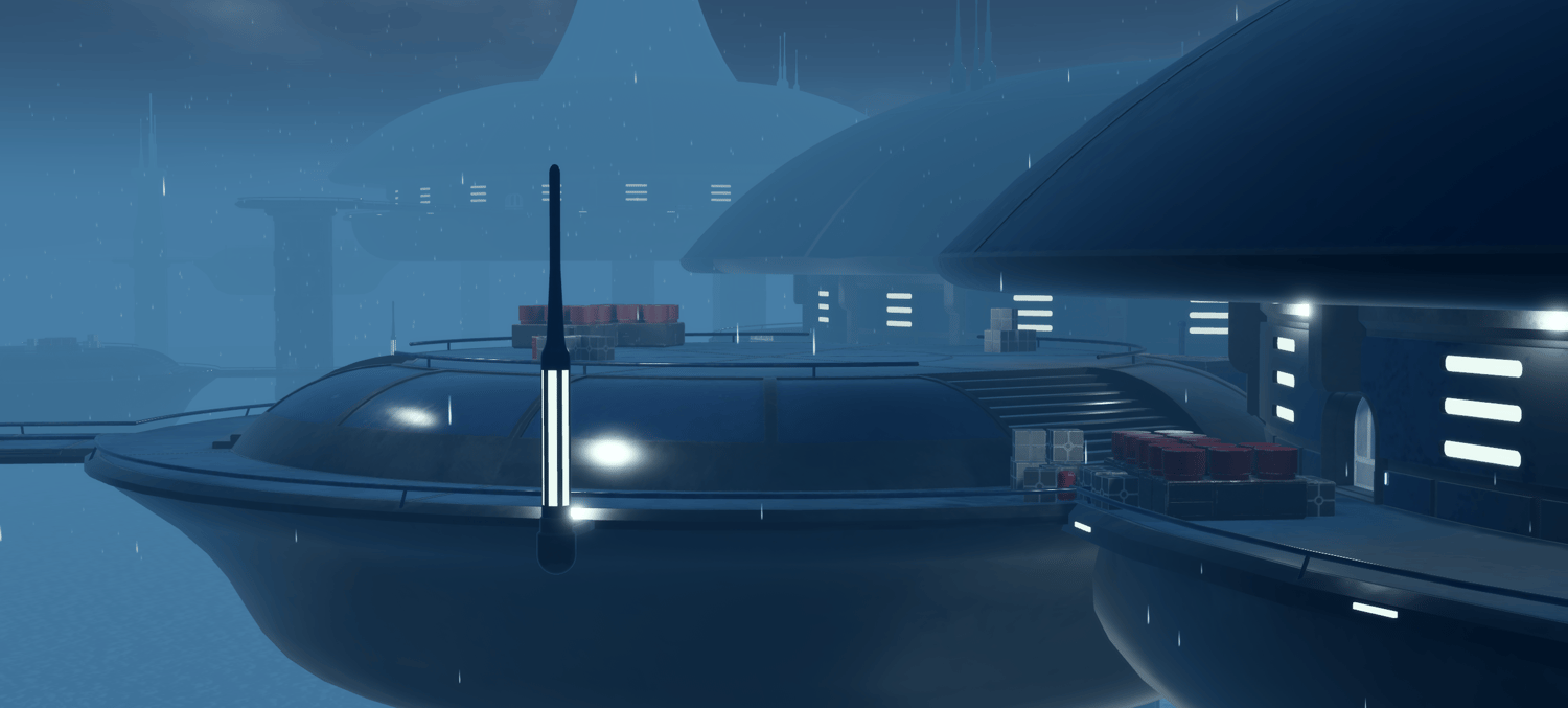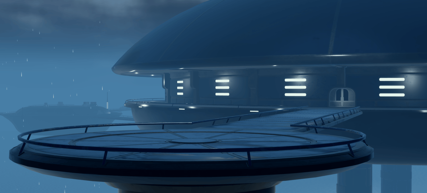 - Multiple high-detail landing pads connected by expansive exterior walkways