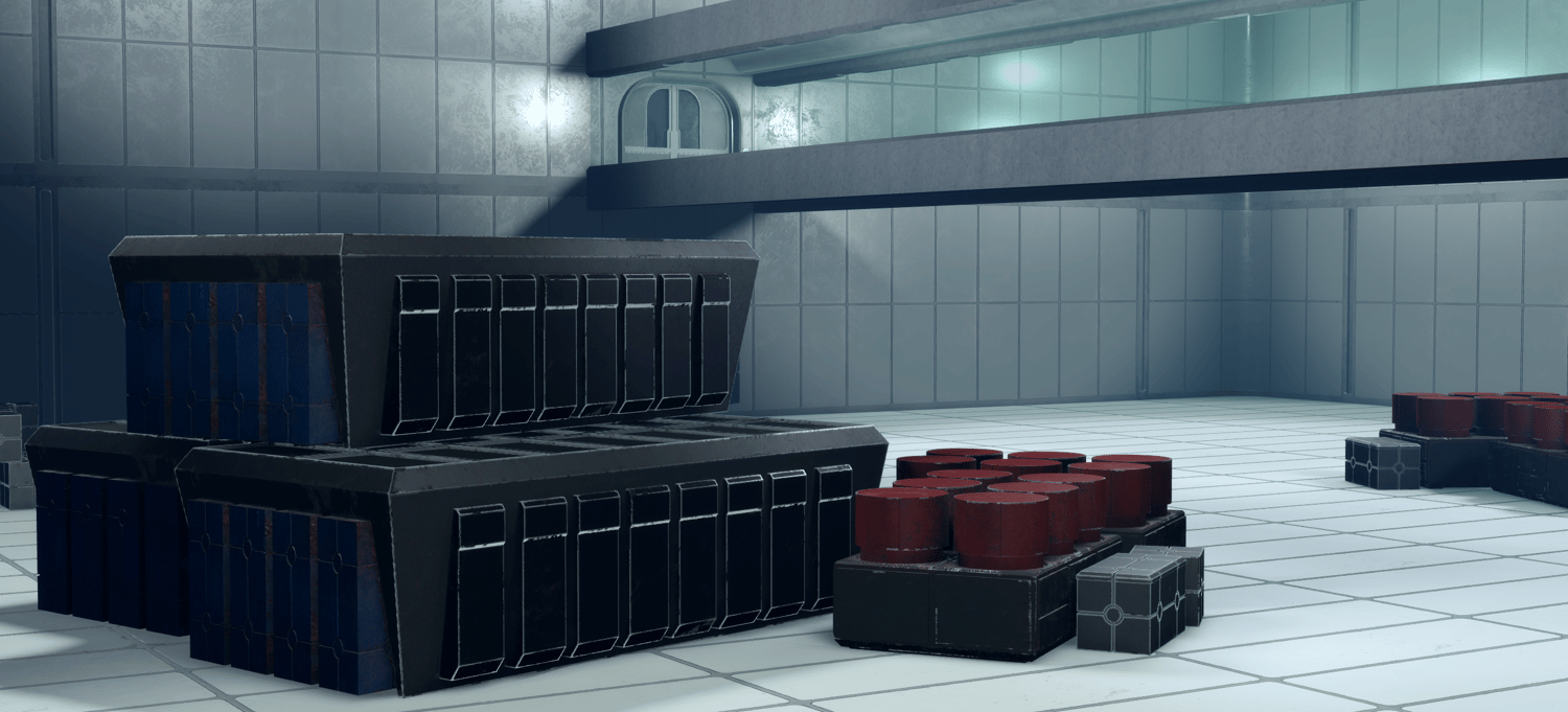 - Detailed armory with weapon assets, lockers, and gun rack models