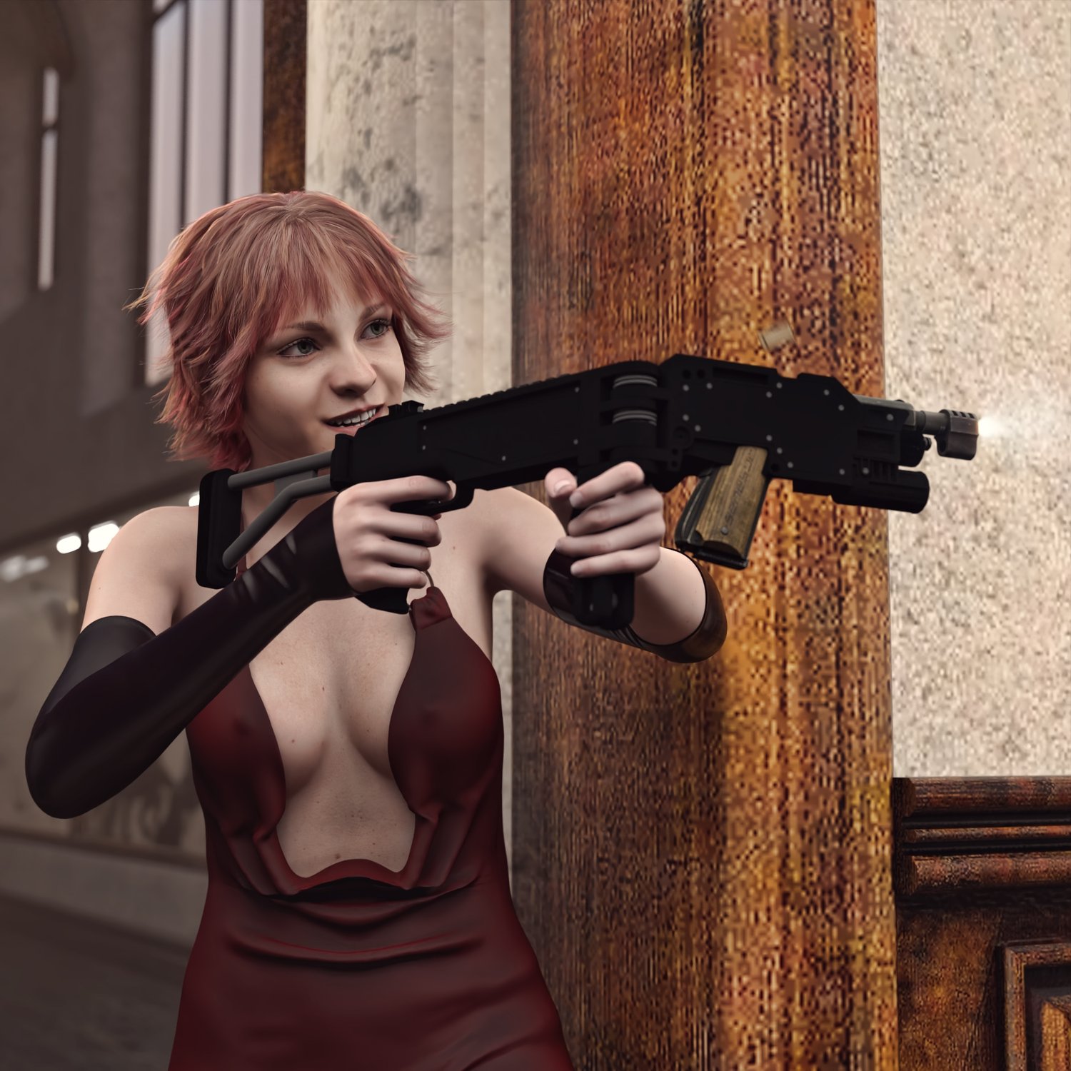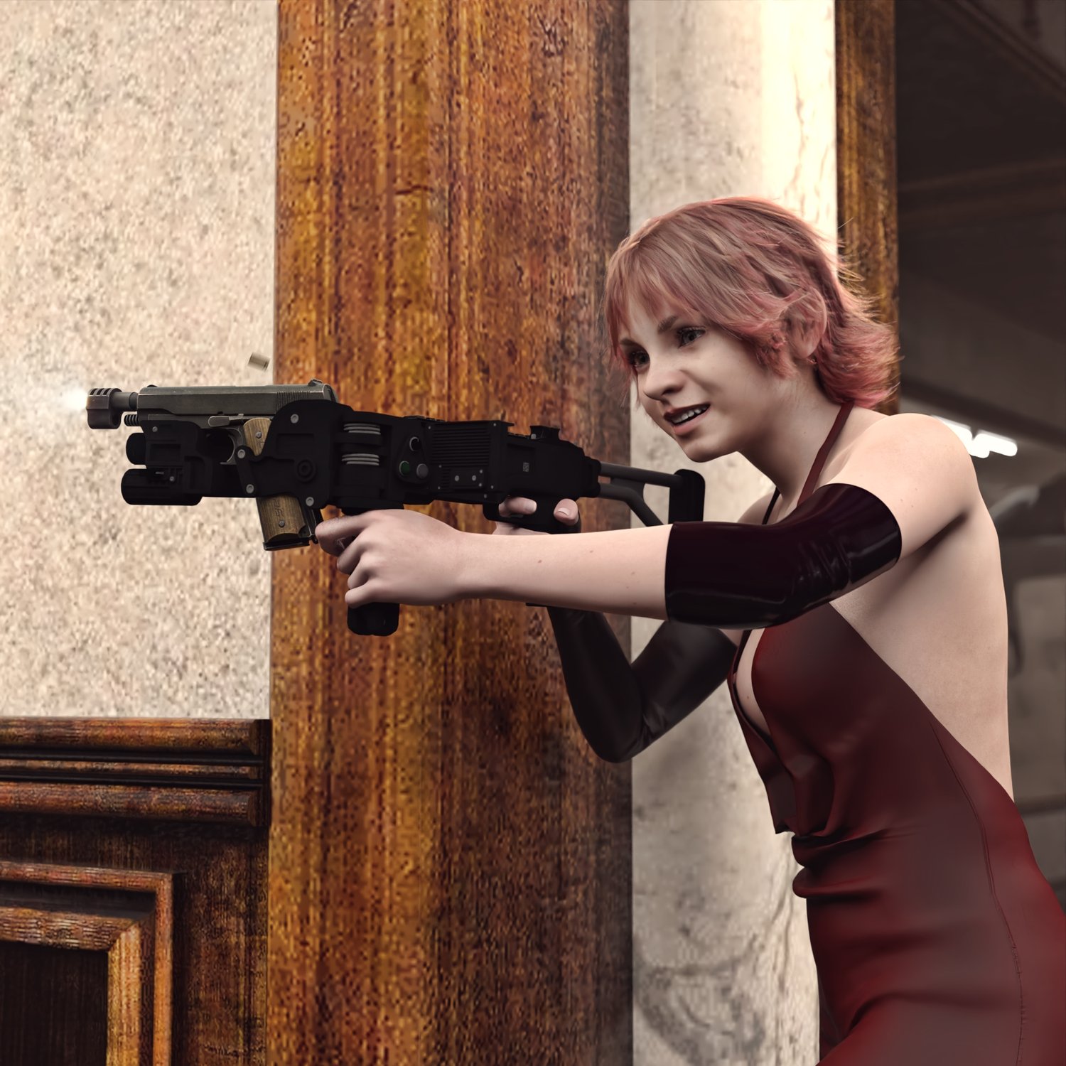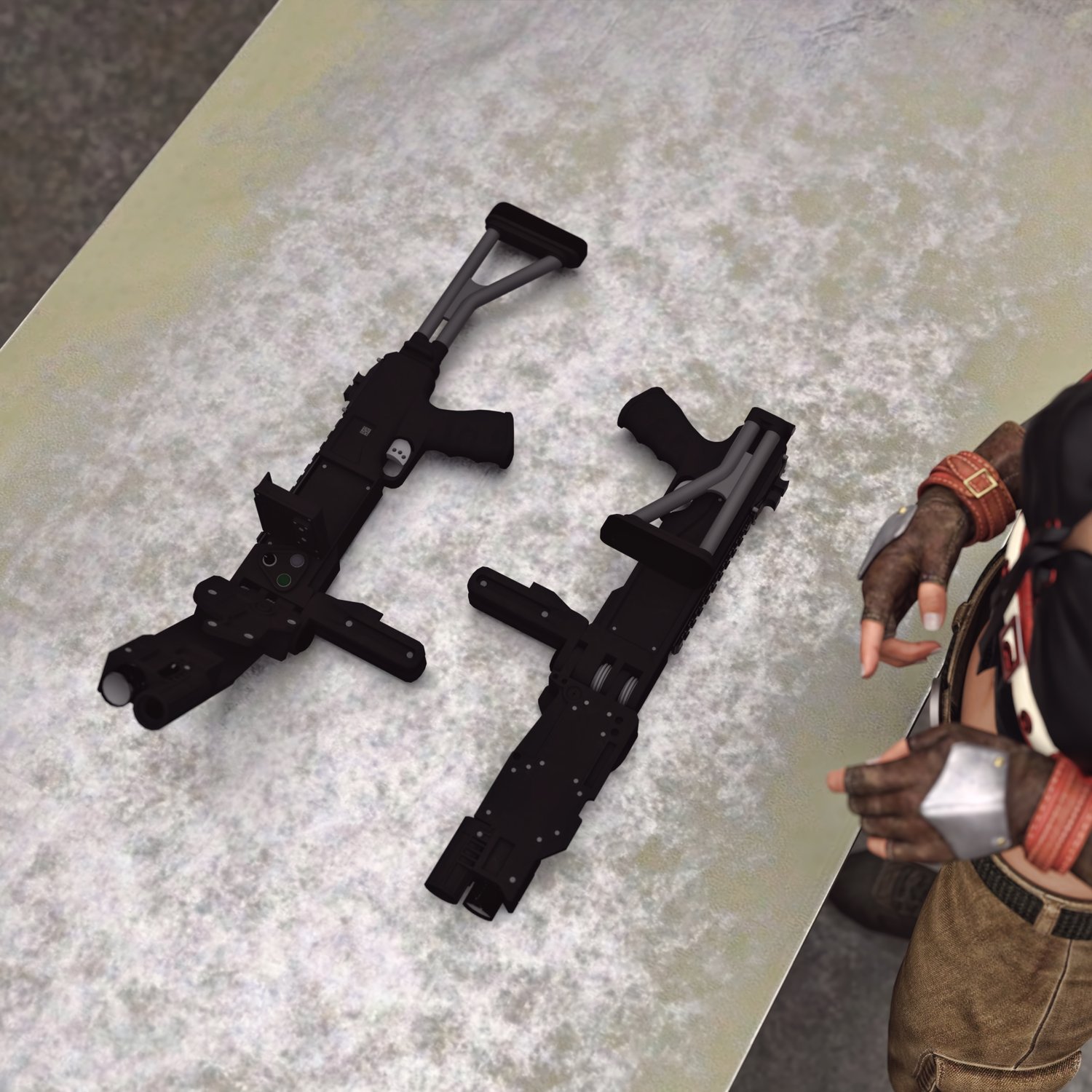 Probably one of the coolest devices for urban warfare operations and close quarters combat. Famously used by a famous actress in a famous movie :D The prop is rigged and converted for use with DAZ. Trigger, stock, etc also rigged for more realistic pictures. The prop doesn't include a gun, but you can parent any pistol to the front part and position it with ease. So any gun prop you have can be used, or you can check out a multitude of guns in this store :) If you're making a spy or a soldier, spetsnaz or any other special people- this cornershot device suits it all.