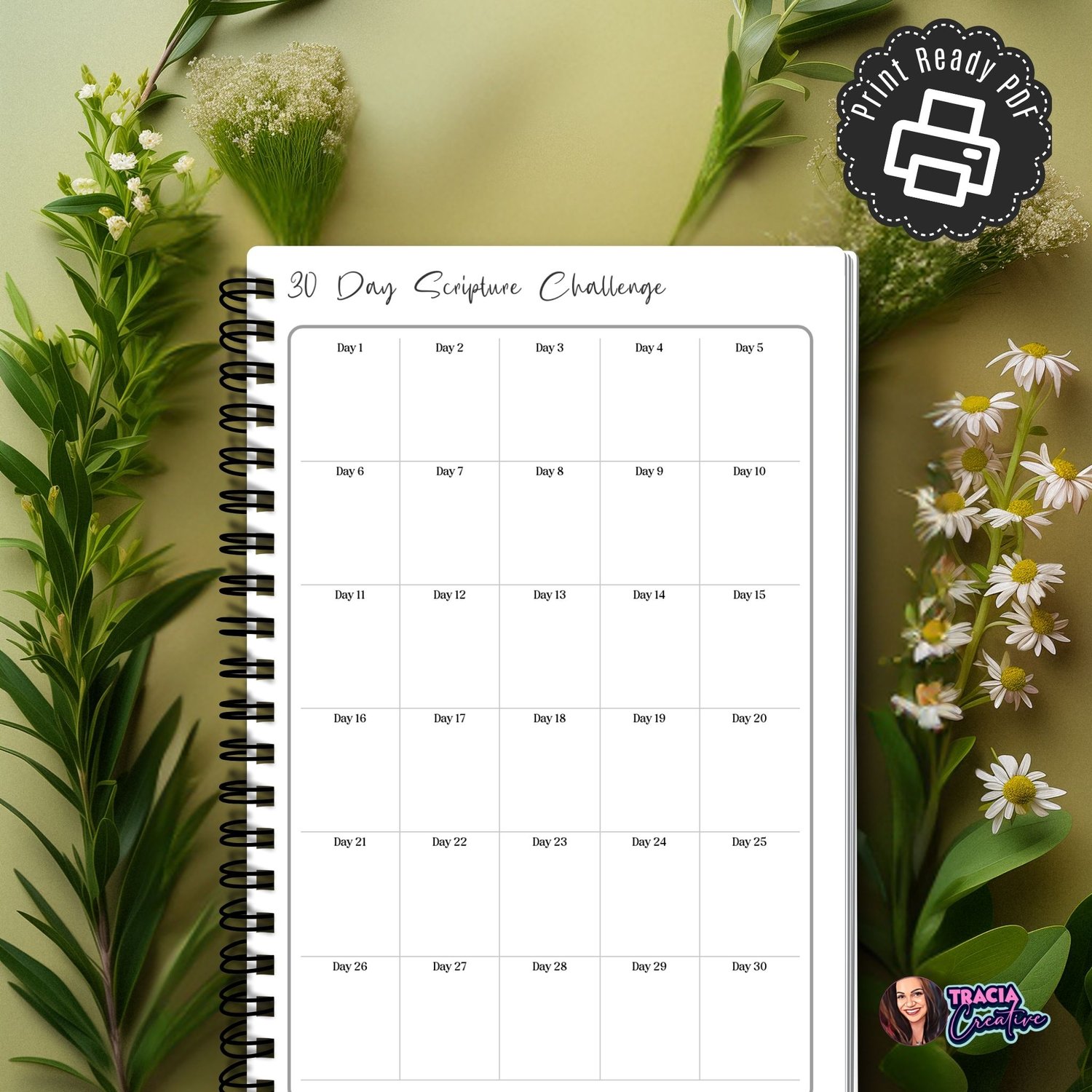 30-Day Bible Scripture Challenge Planner Insert - Printable Digital Download PDF