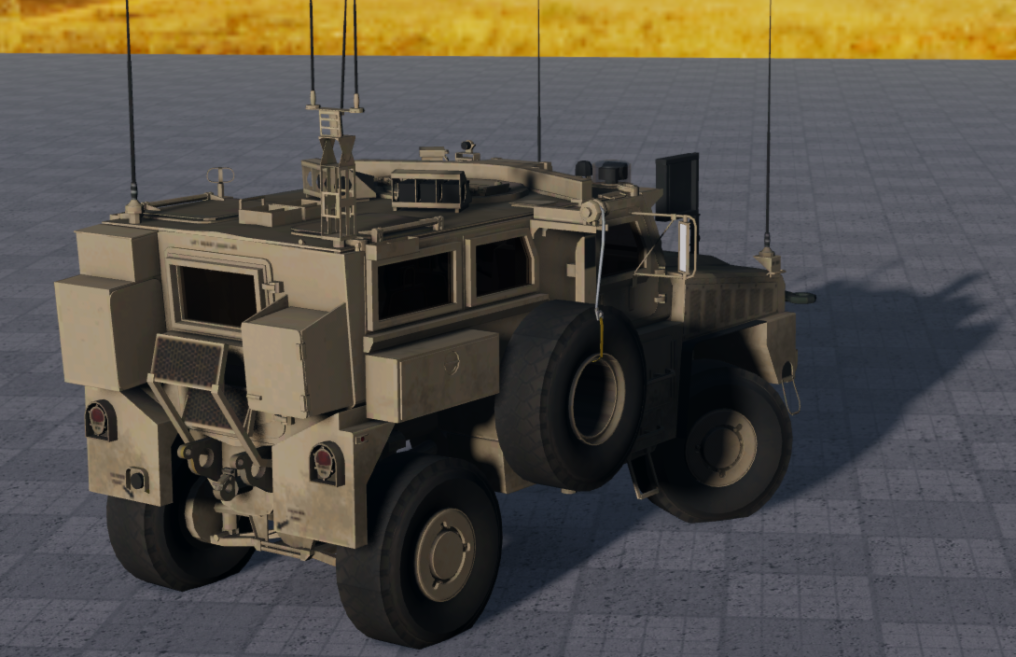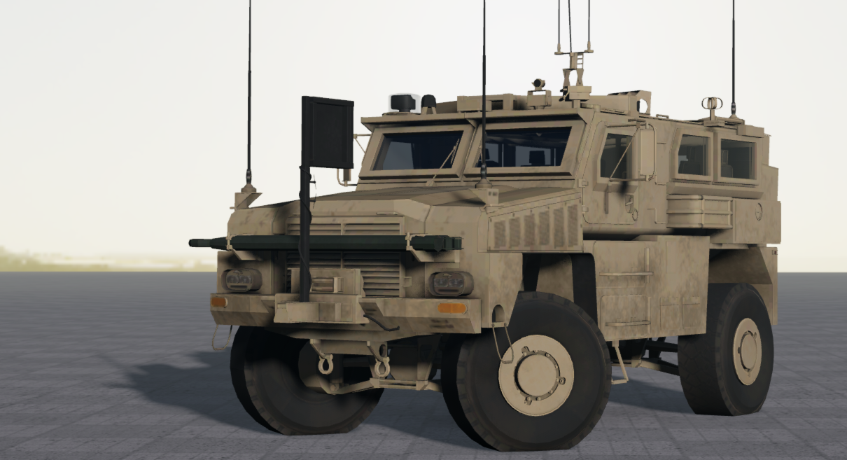 The MRAP 4X4, also known as the "Cougar", is an armoured vehicle that was developed in response to the increased threat of IEDs in the Iraq War. The MRAP 4X4 is designed to provide high levels of protection against mines and IEDs, while also being mobile and easy to transport.