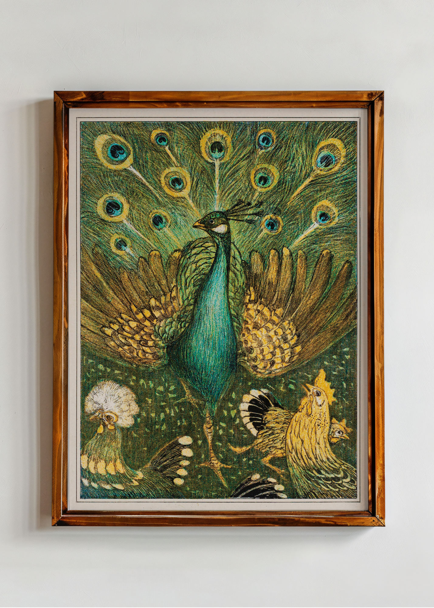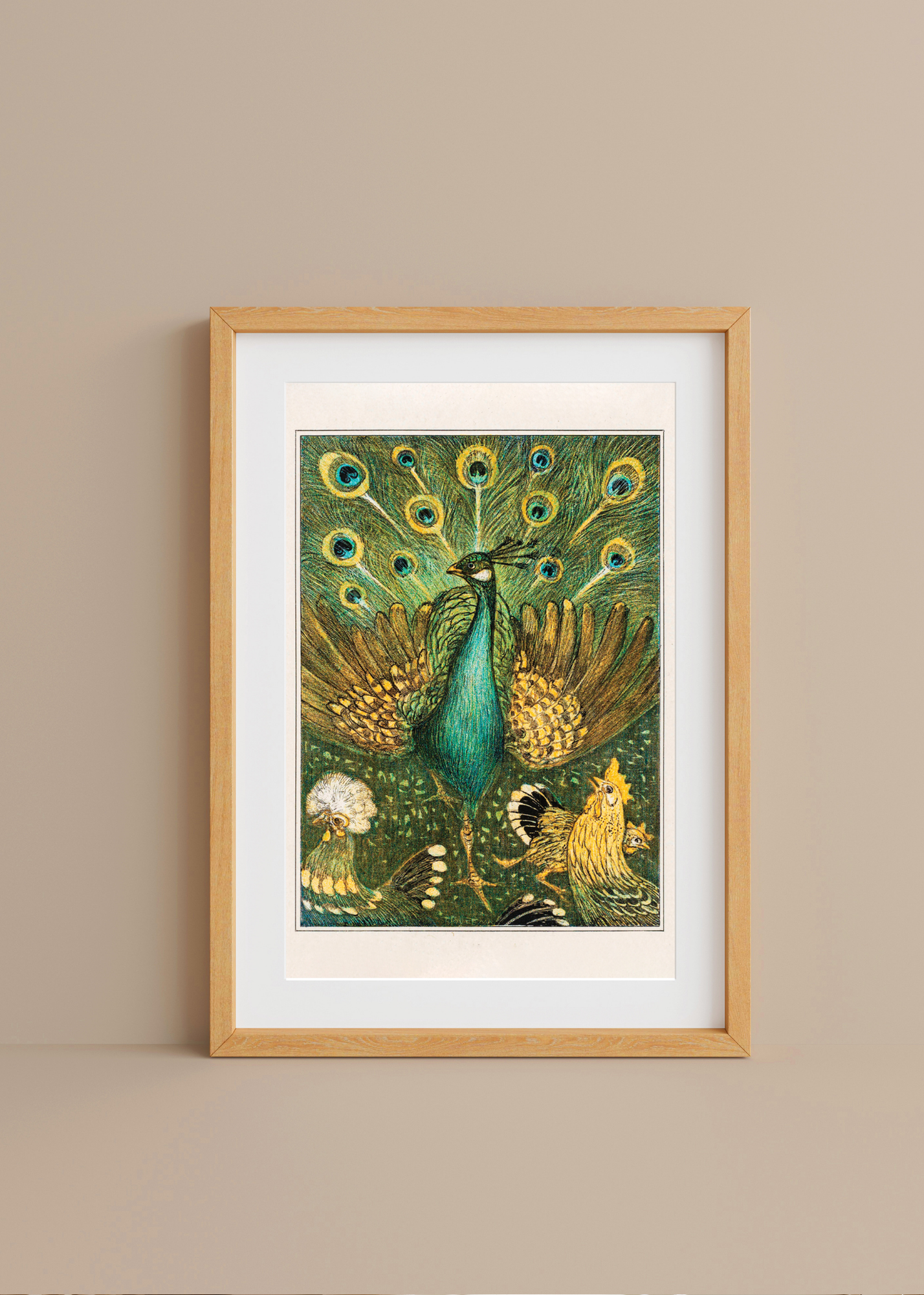 Hoytema’s hand, so often attuned to the still rhythms of the natural world, brings warmth and whimsy without sentimentality. Every feather, every curve of beak and wing, is traced with quiet reverence. The composition hums with balance—an ode to coexistence, to beauty both extravagant and soft-spoken.