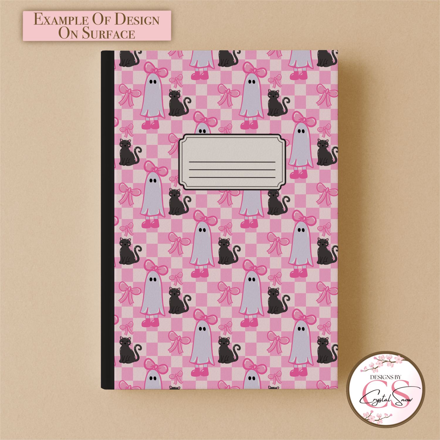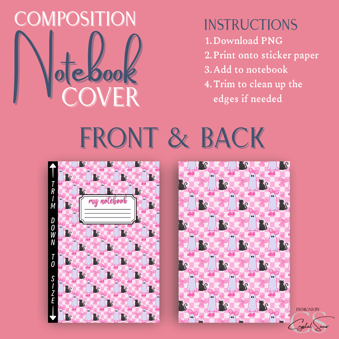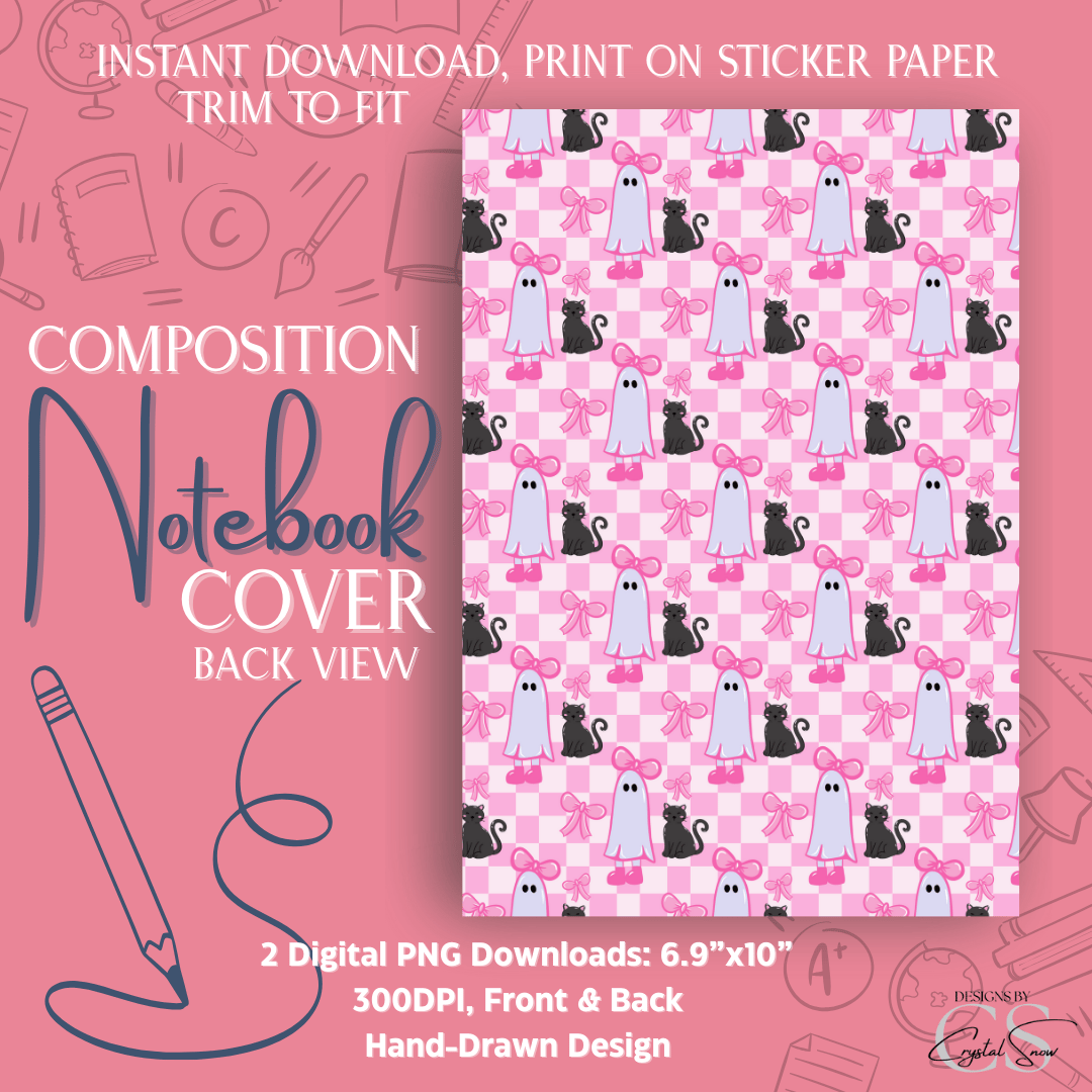 Girly Ghosts & Black Cats Composition Notebook Cover | Printable PNG Digital Download for DIY School Supplies