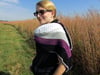 This large rectangular wrap starts with a long center striped strip, with stitches picked up along the outer edges. My piece used the four colors found in the Ace Pride Flag.