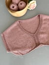 Suggested fit approx. 2.5 – 7.5cm/ 1 - 3” positive ease. Sample shown in size 4 with 3.75cm/ 1.5” of ease at chest post blocking.