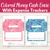 Colored Money Cash Envelopes With Budget Trackers | Printable Colored Money Cash Envies With Expense Trackers | Cash Stuffing Log