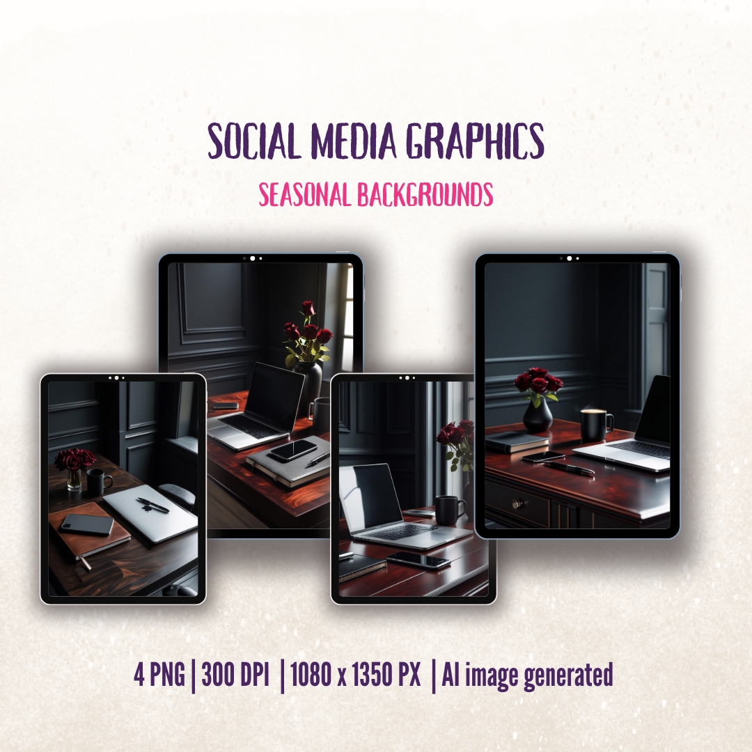Moody Chic Desk Vibes AI Image Social Media Backgrounds Pack