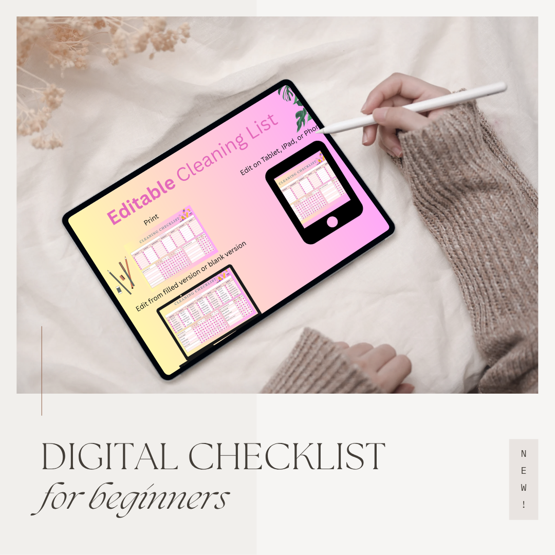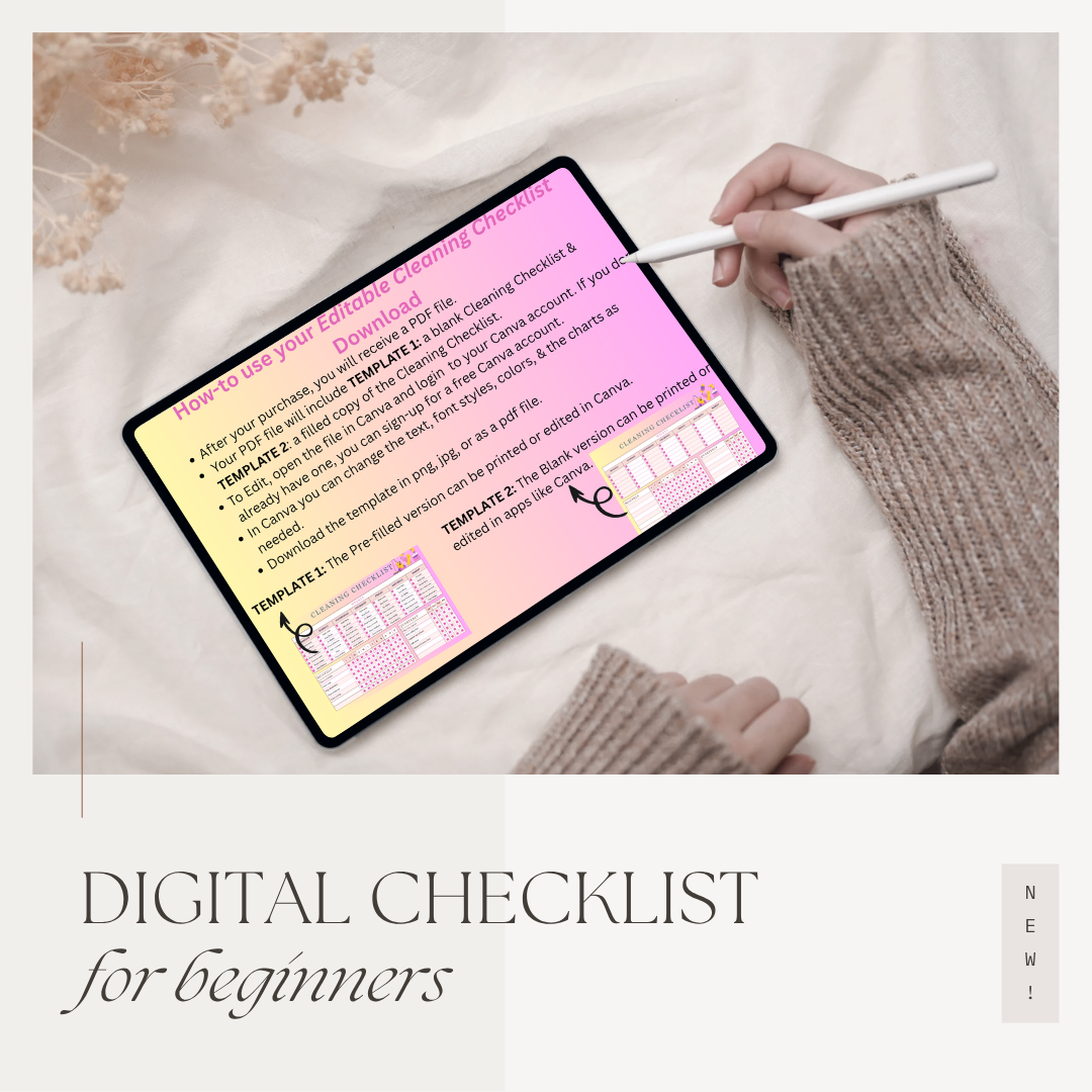 Stay organized and productive with this Printable Filled Editable Cleaning Checklist! This digital download comes as a pre-filled PDF that you can edit print and/or write on by hand. Perfect for work tasks, home chores, school planning, or daily to-do lists, this minimalist and versatile template is designed to help you take control of your schedule.