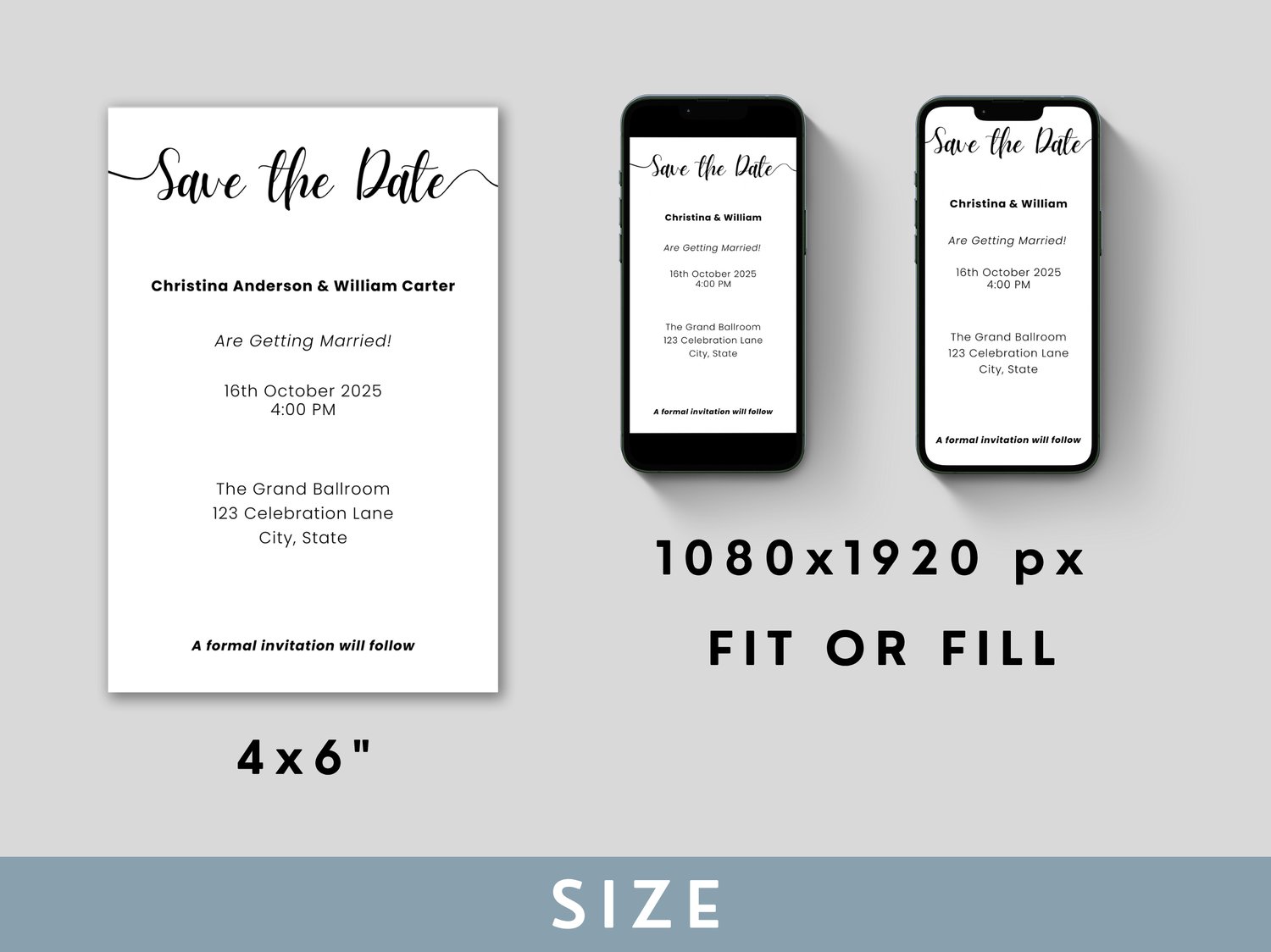 Minimalist Save The Date Digital Wedding Invitation Canva Template Editable Layout Wedding Guest Invite Printable Save The Date Card 002