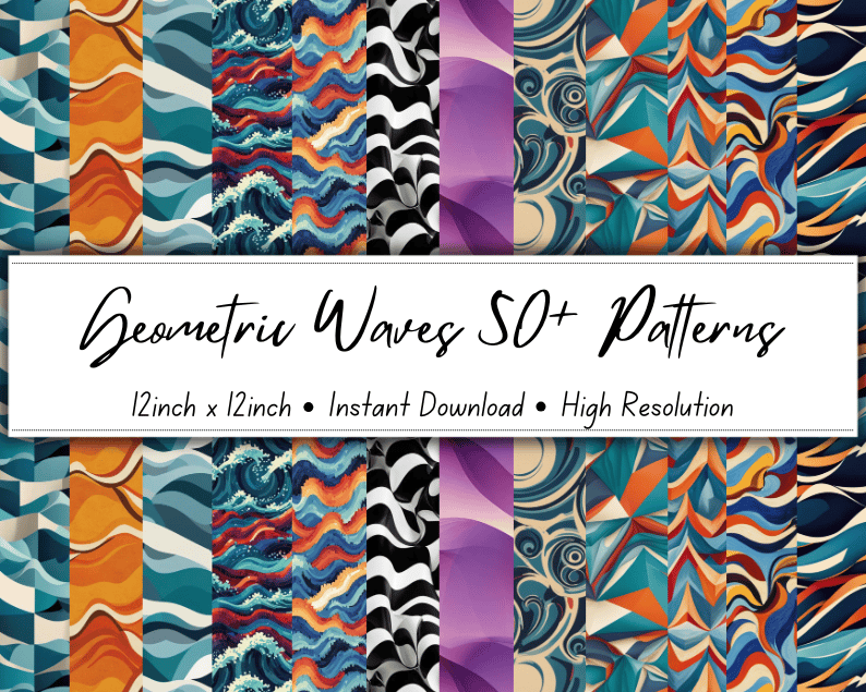 Geometric Waves 50+ Patterns Collection | 12x12 Inches | High-Resolution Digital Printables | Instant Download