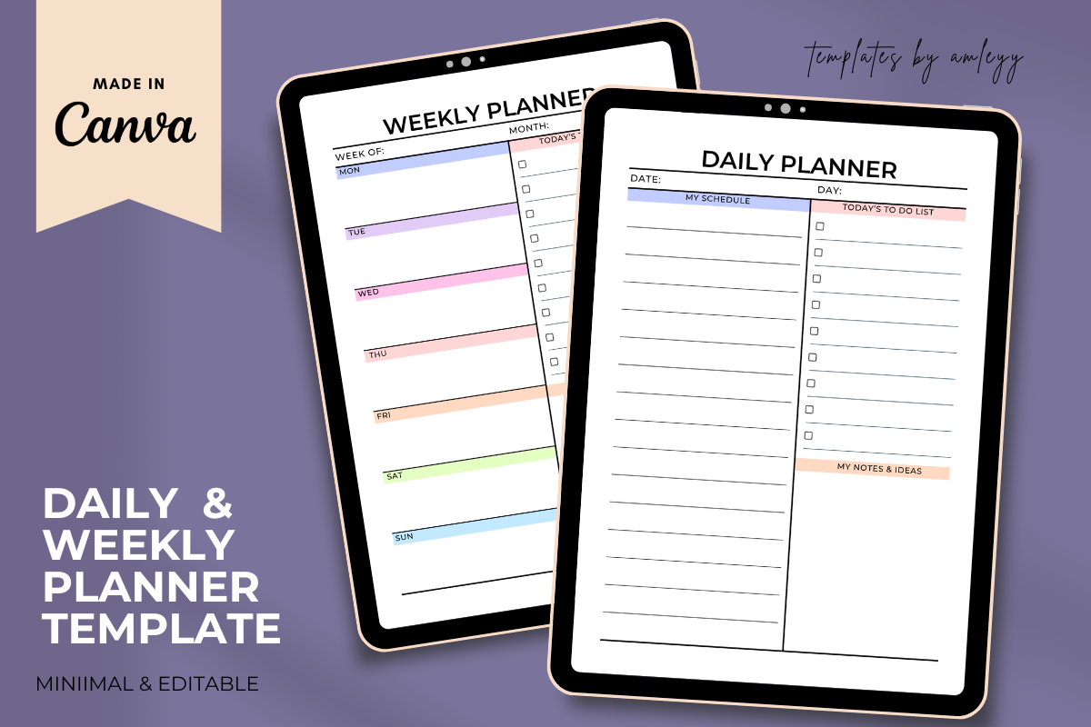 Transform your planning routine with this Aesthetic Minimal Daily & Weekly Planner Template, designed for creators, students, and busy professionals who love clean, modern layouts. This fully editable Canva template allows you to personalize colors, fonts, and sections to match your unique style. Use it digitally or print it at home for an elegant, minimalist planning setup.