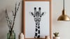 Black and white giraffe wall art printable with a bold modern look.