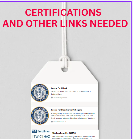 This file will take you to the necessary links that will lead you to the certifications. no need to search I already did the work for you .