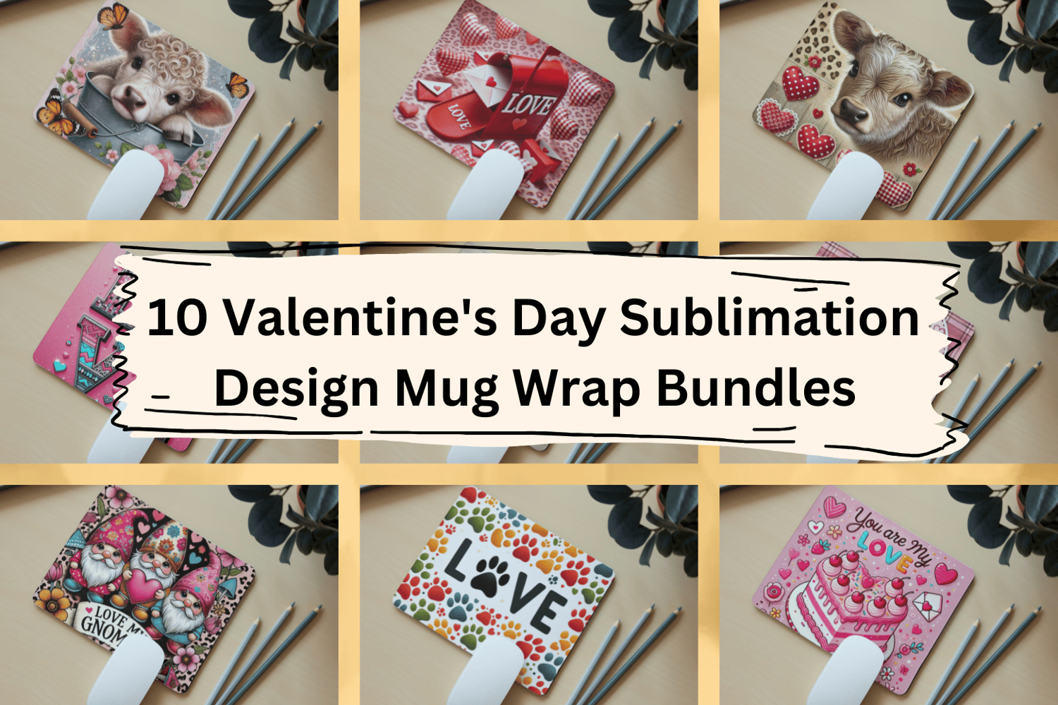 Sublimation Design: 10 Valentine's Day Mouse Pad Bundles - High-Quality 300 DPI Digital Download