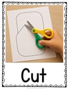 - Each card features a bold instructional word (e.g., cut, paste, color, read, sort)