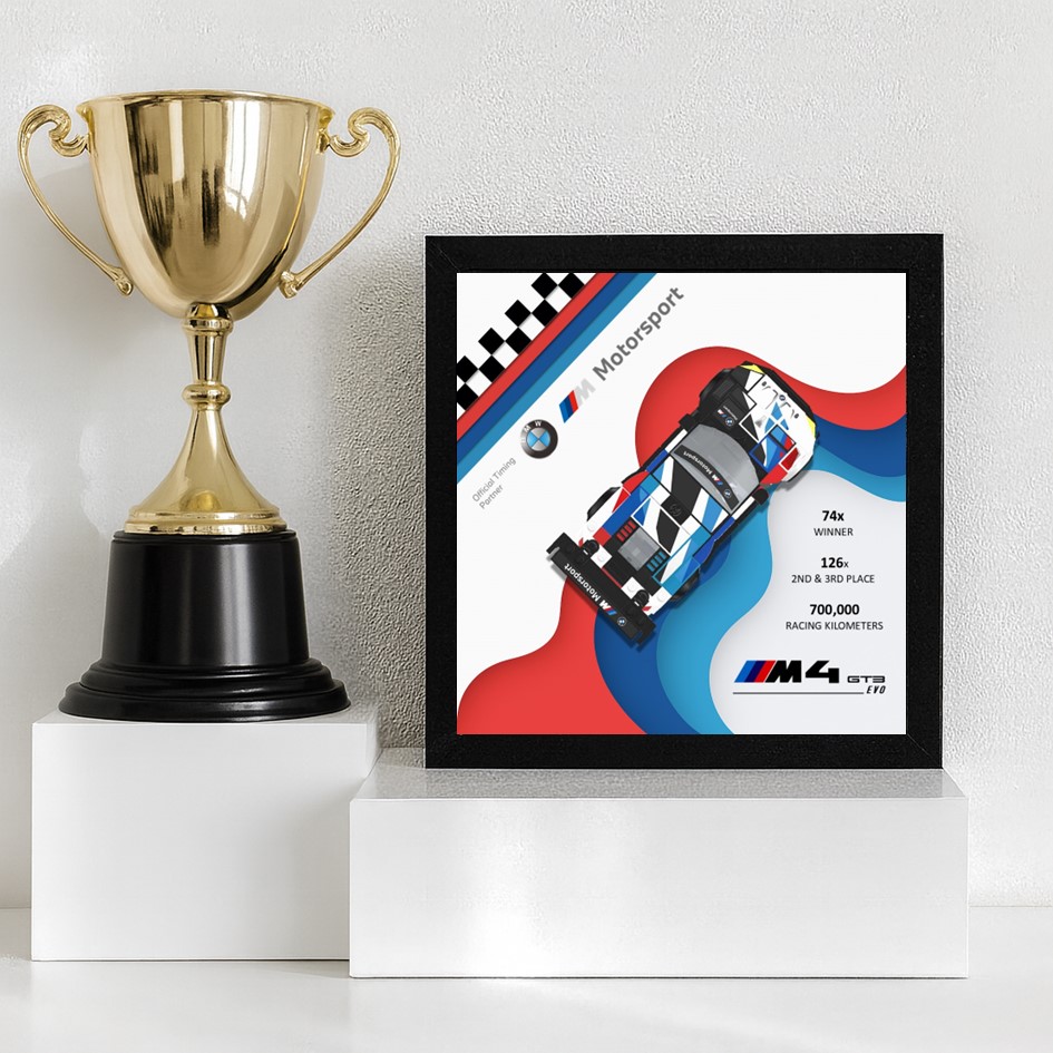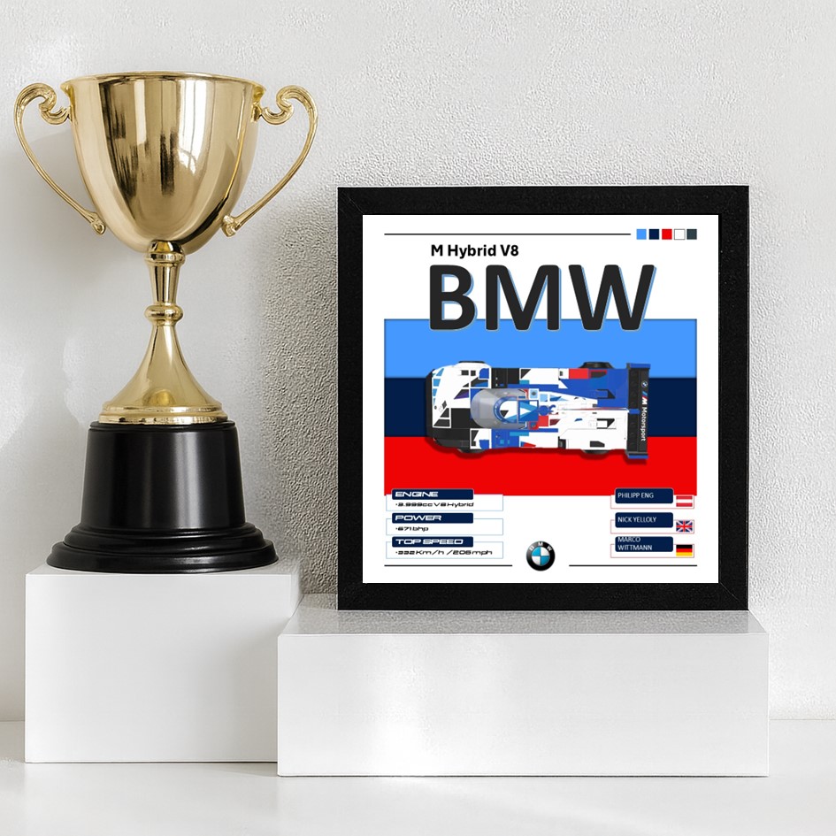 💙 Chaque affiche reprend les couleurs emblématiques du BMW Motorsport – rouge, bleu et noir – pour un rendu moderne et dynamique.