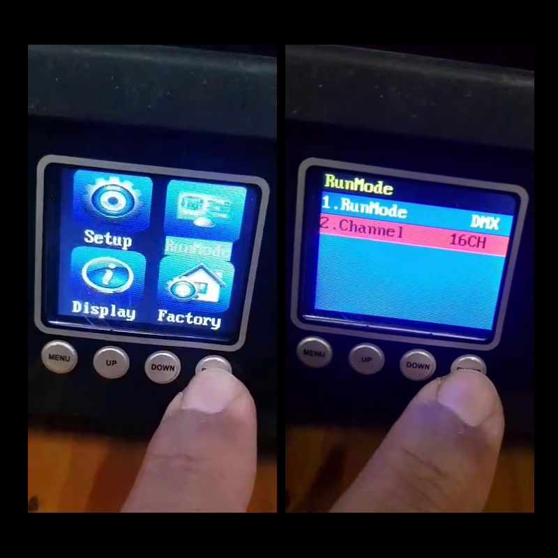 * Verifique, con un Fixture de pruebas (click), que coincidan estos canales: 1 Pan, 3 Tilt, 7 Dimmer, 15 Blanco, 8 Strobo.
