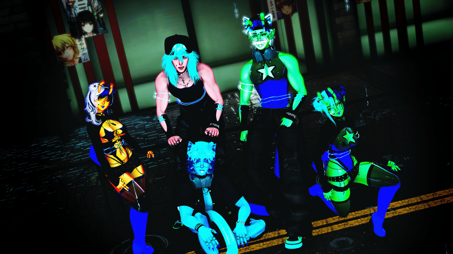 Accessories: Antennae Stars / Hat / Glasses / Ear Piercings / Star Stickers / Holo Mask / Gummy Star / Collar / 3 Necklaces / Headphones / Bracelets / Glowsticks / Warmers / Rings / Nails / Corset / Body Pierce / Belts / Beans