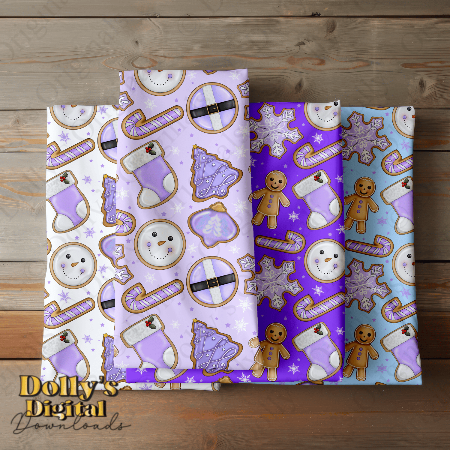Includes the Four Lilac Christmas Cookie Seamless Patterns PNG tiles (4 PNG’s)