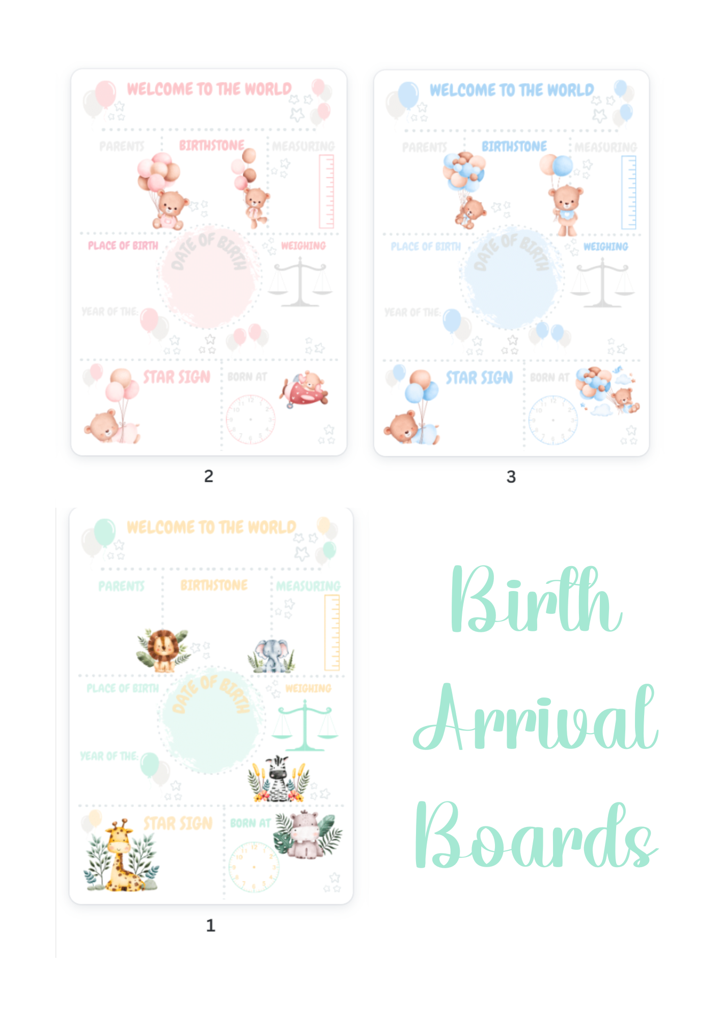 3 Variations of Birth Arrival Boards