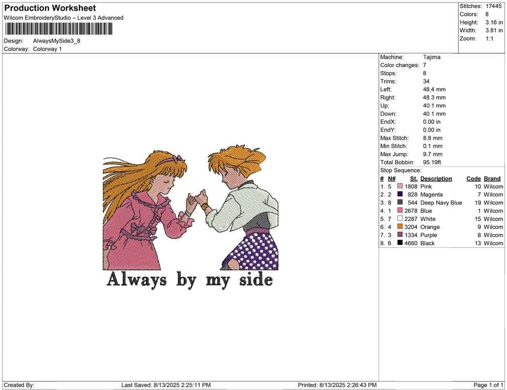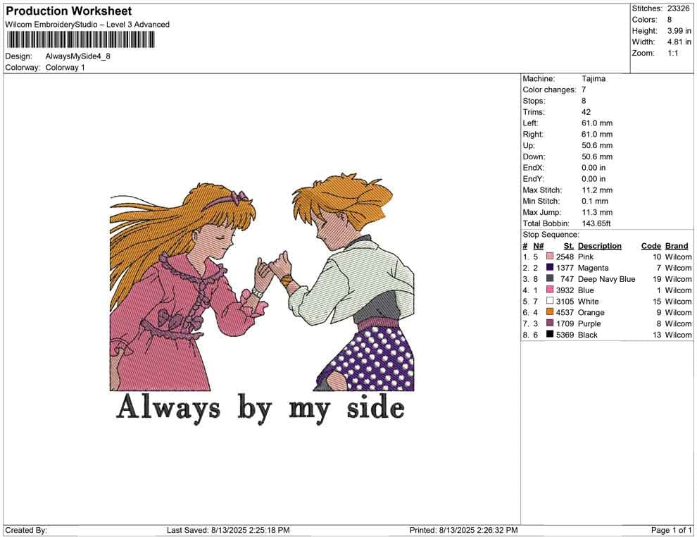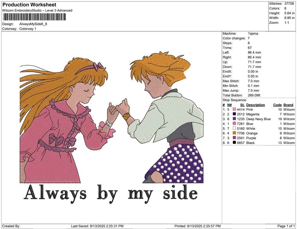 Always by my side embroidery design