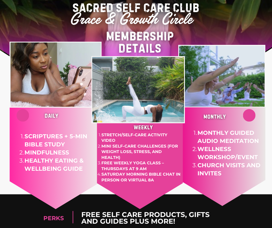 Private Wellness Club for women who value Faith, Wellness, & Routines. This society will focus on support for all things wellbeing mentally, physically, spiritually, and you can expect the following monthly;