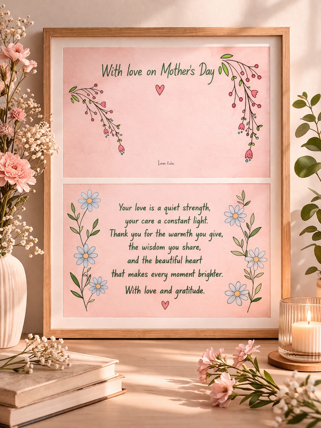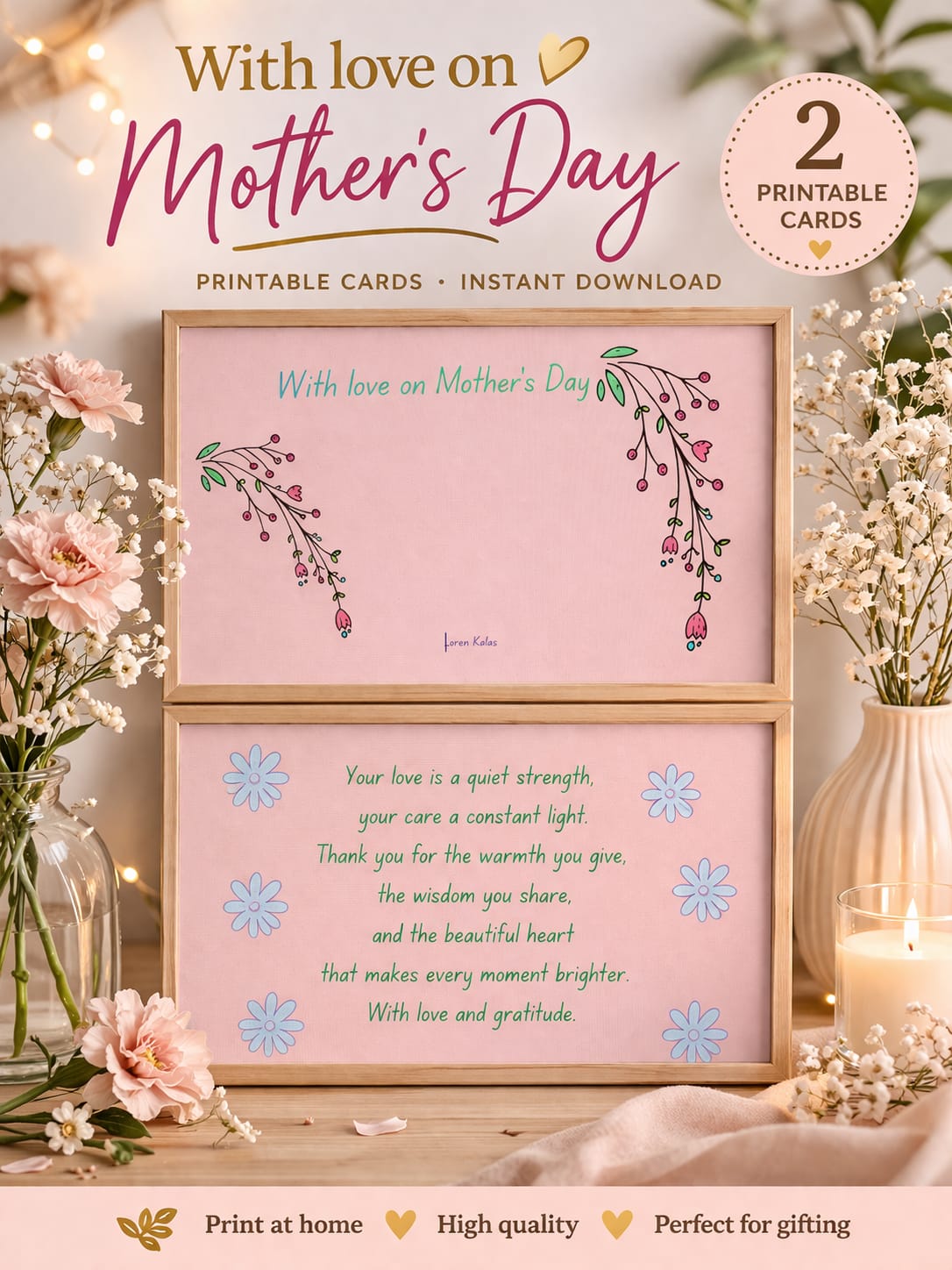 🎀 Mother’s Day with Grace – Soft Floral Printable Card & Mini Wall Art